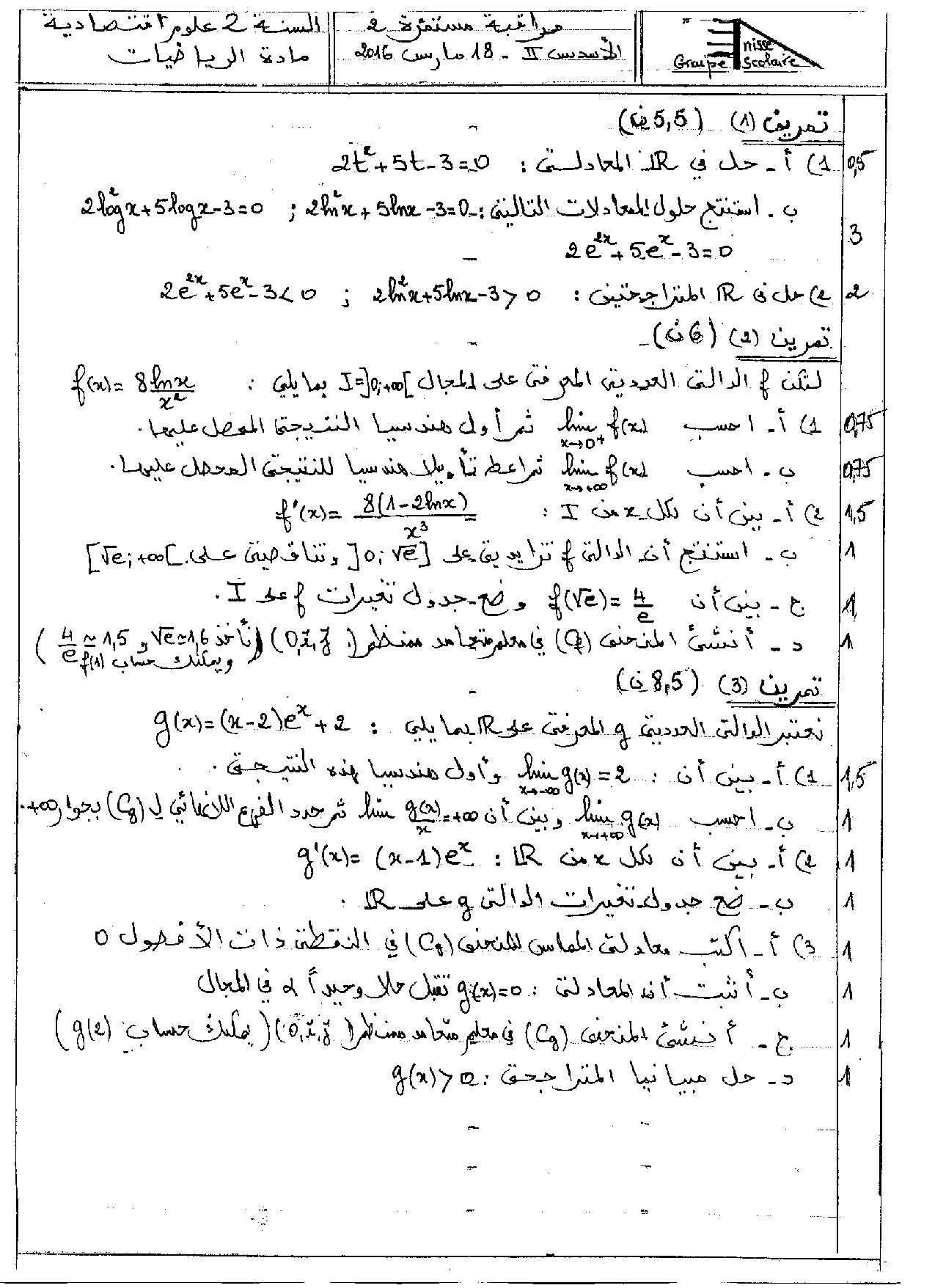 Devoir 2 Modèle 4 - Mathématiques 2 Bac Eco-SGC Semestre 2