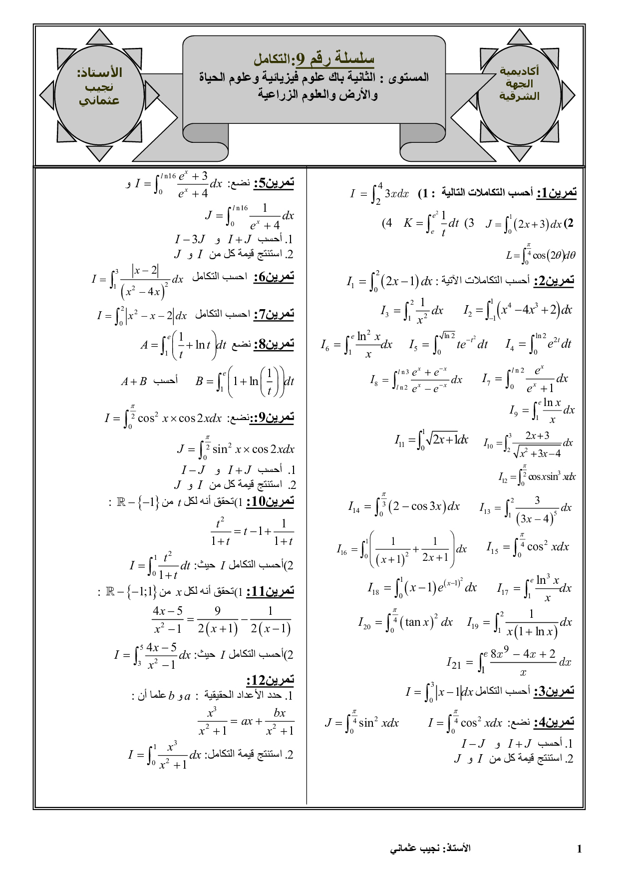 الحساب التكاملي - تمارين غير محلولة 1