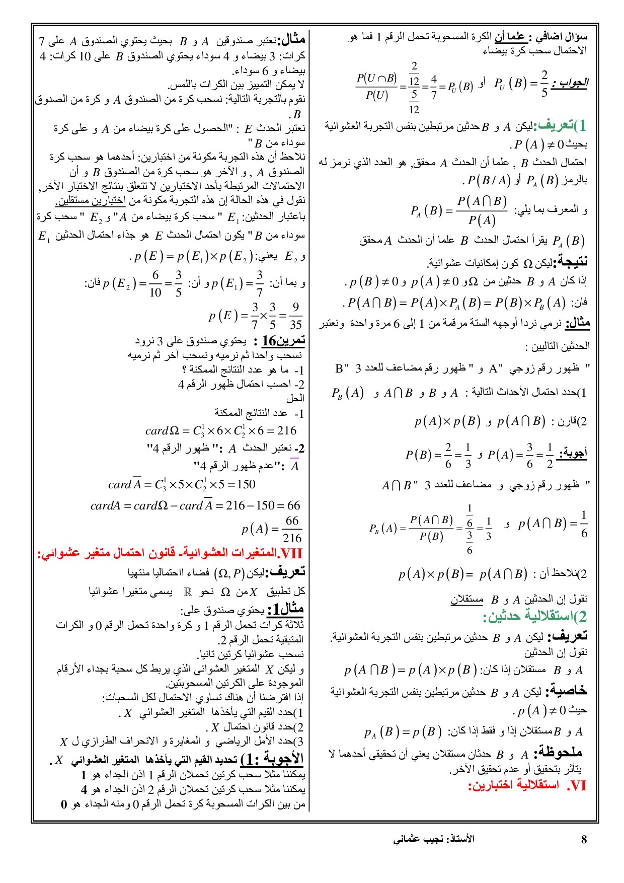 حساب الاحتمالات - الدرس وتمارين محلولة