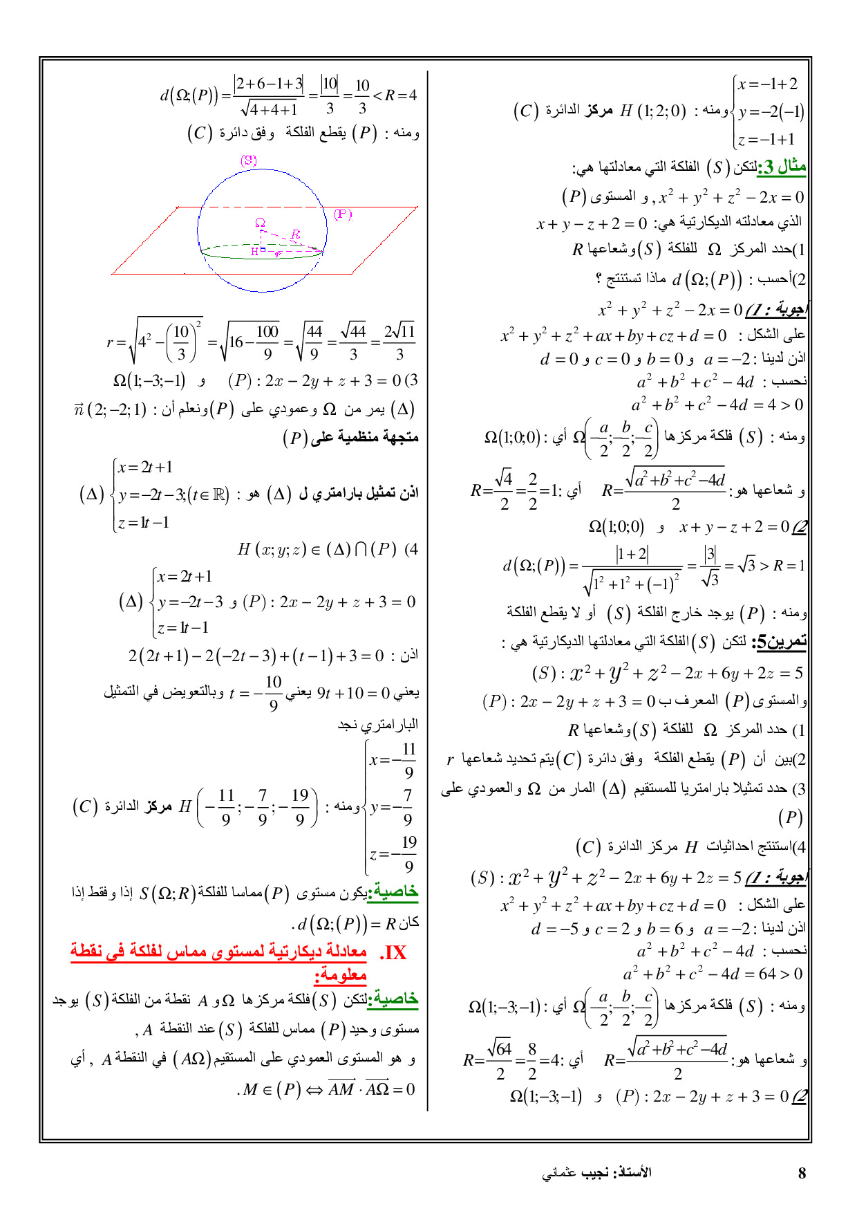 الهندسة الفضائية (الجداء السلمي في الفضاء - الفلكة - الجداء المتجهي)