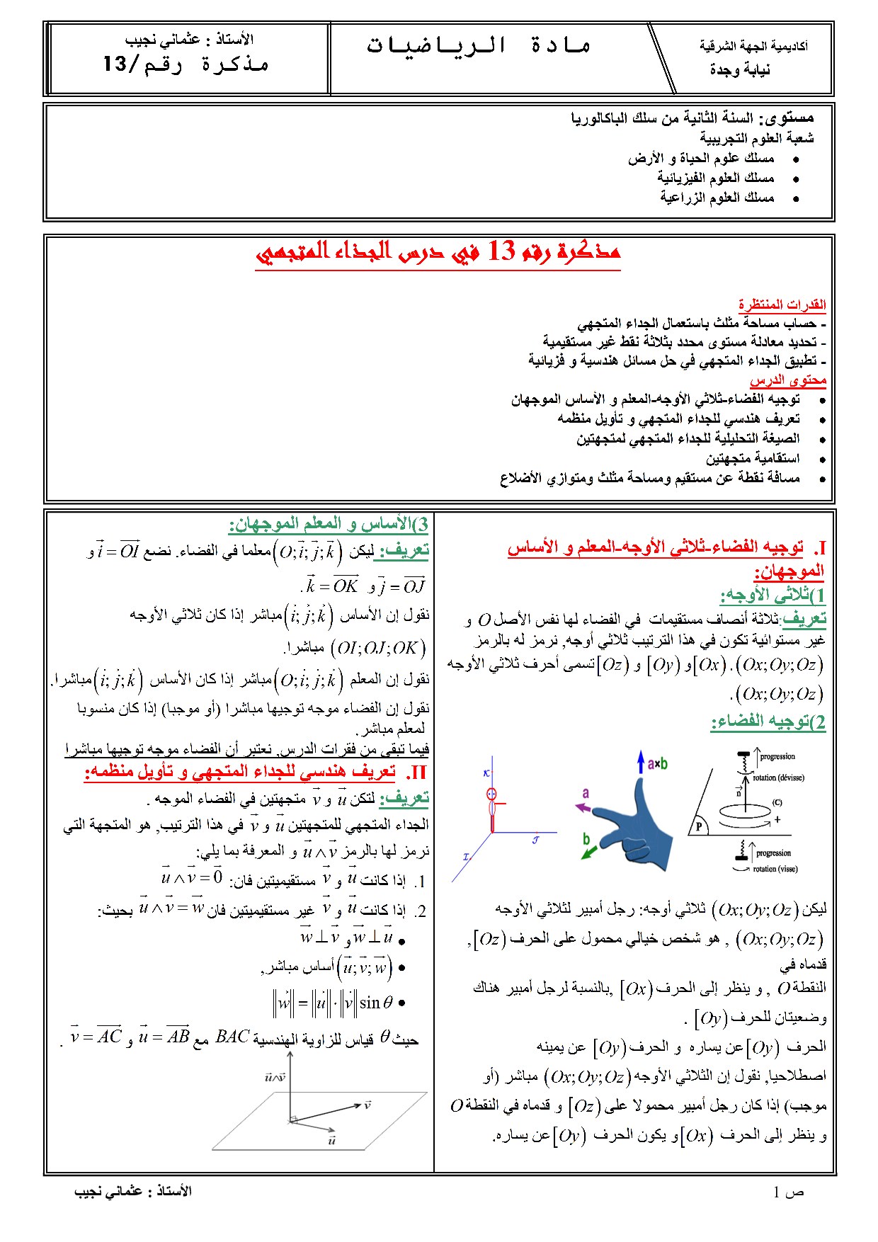 الهندسة الفضائية (الجداء السلمي في الفضاء - الفلكة - الجداء المتجهي)