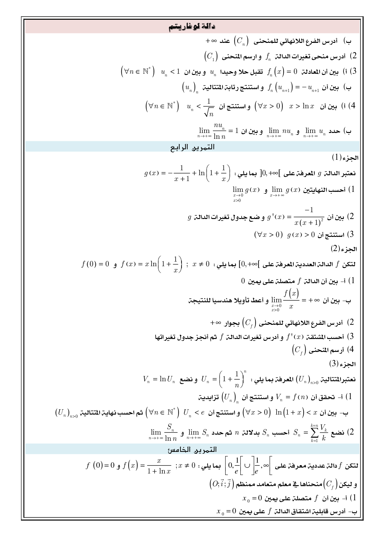 الدوال اللوغاريتمية - تمارين غير محلولة 7