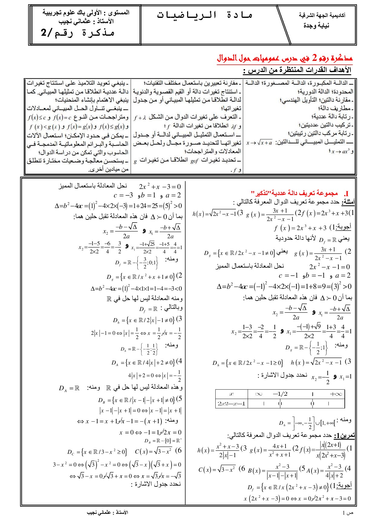 الرياضيات: الأولى باك علوم تجريبية