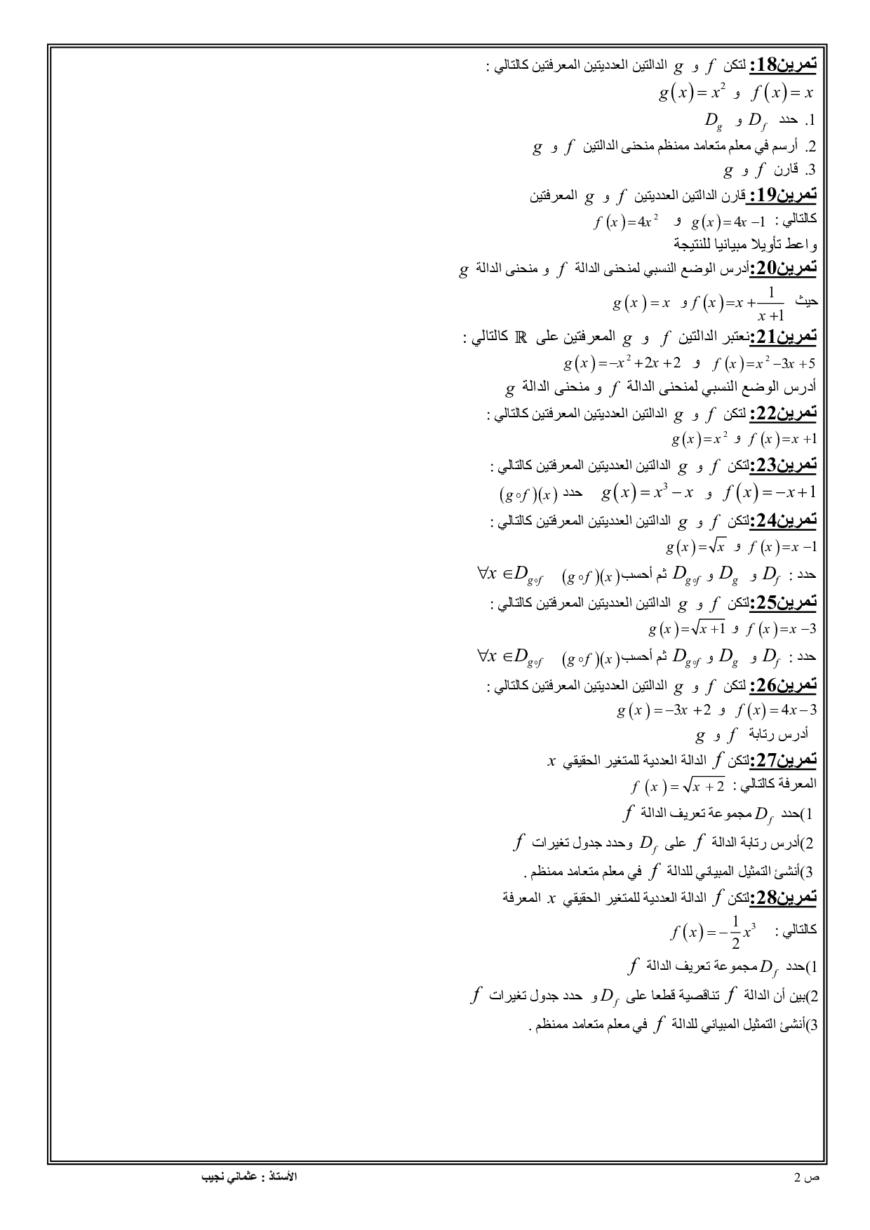 عموميات حول الدوال العددية - تمارين غير محلولة 3