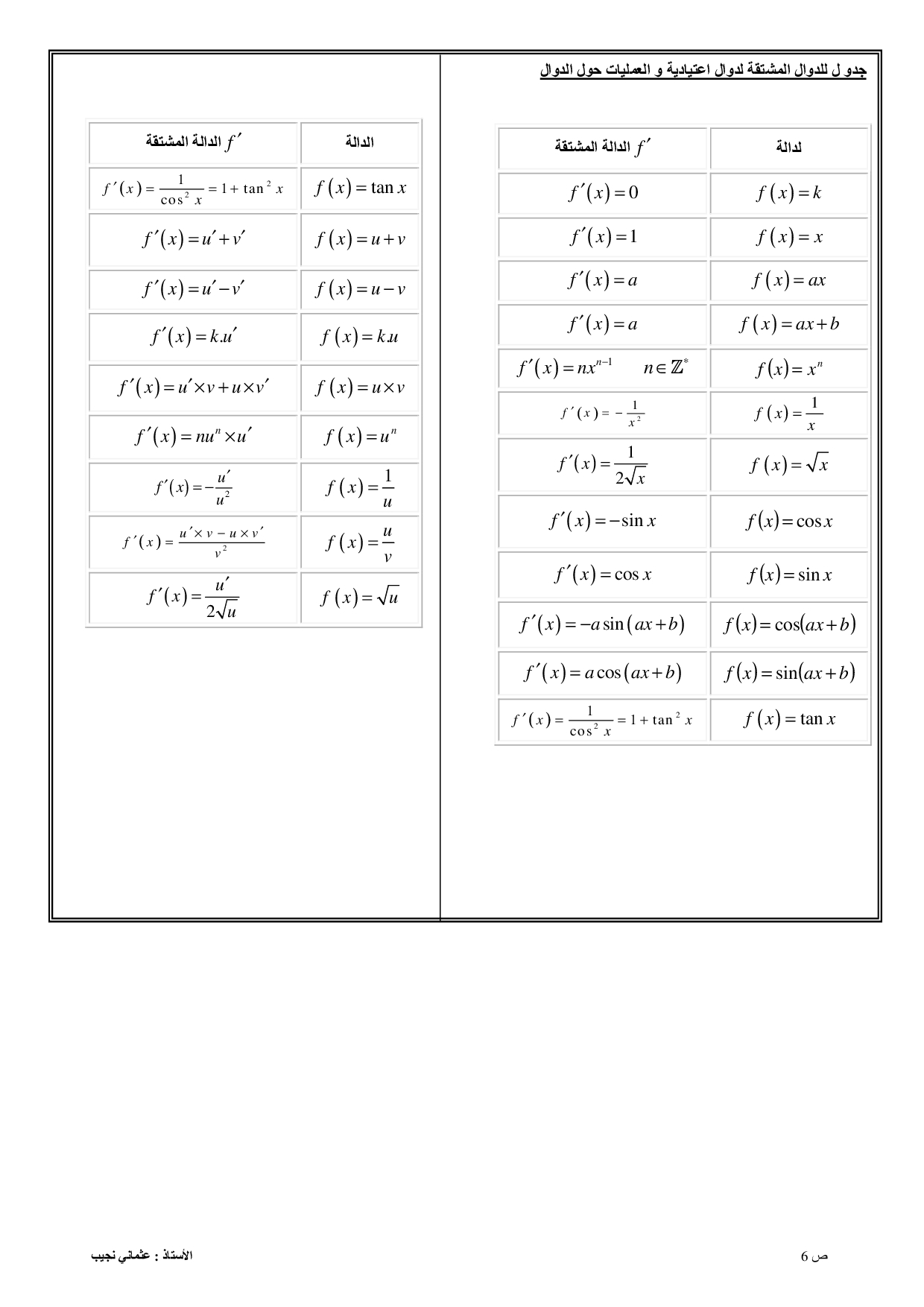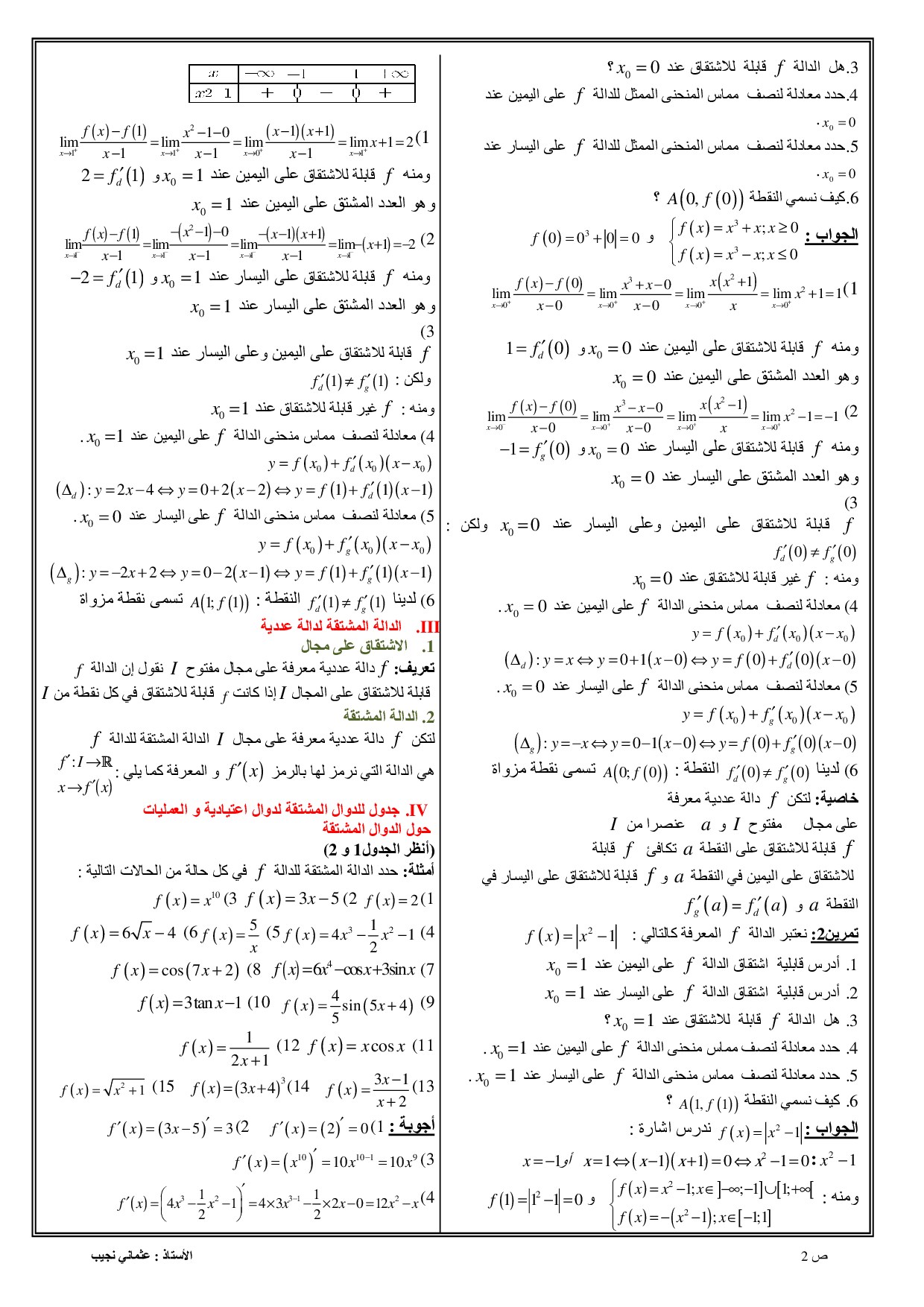 الاشتقاق - الدرس وتمارين محلولة