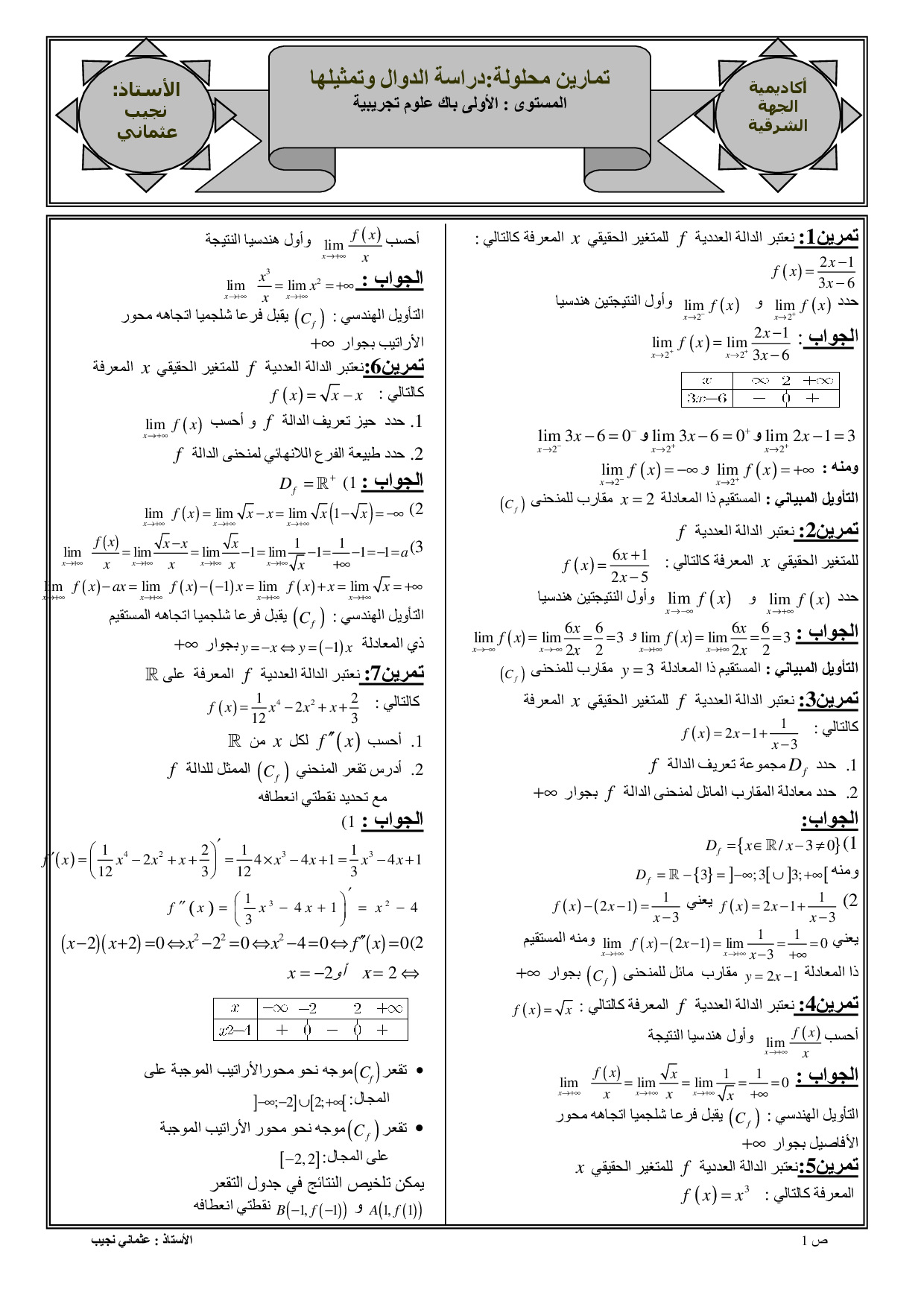 دراسة الدوال وتمثيلها المبياني - تمارين محلولة 1