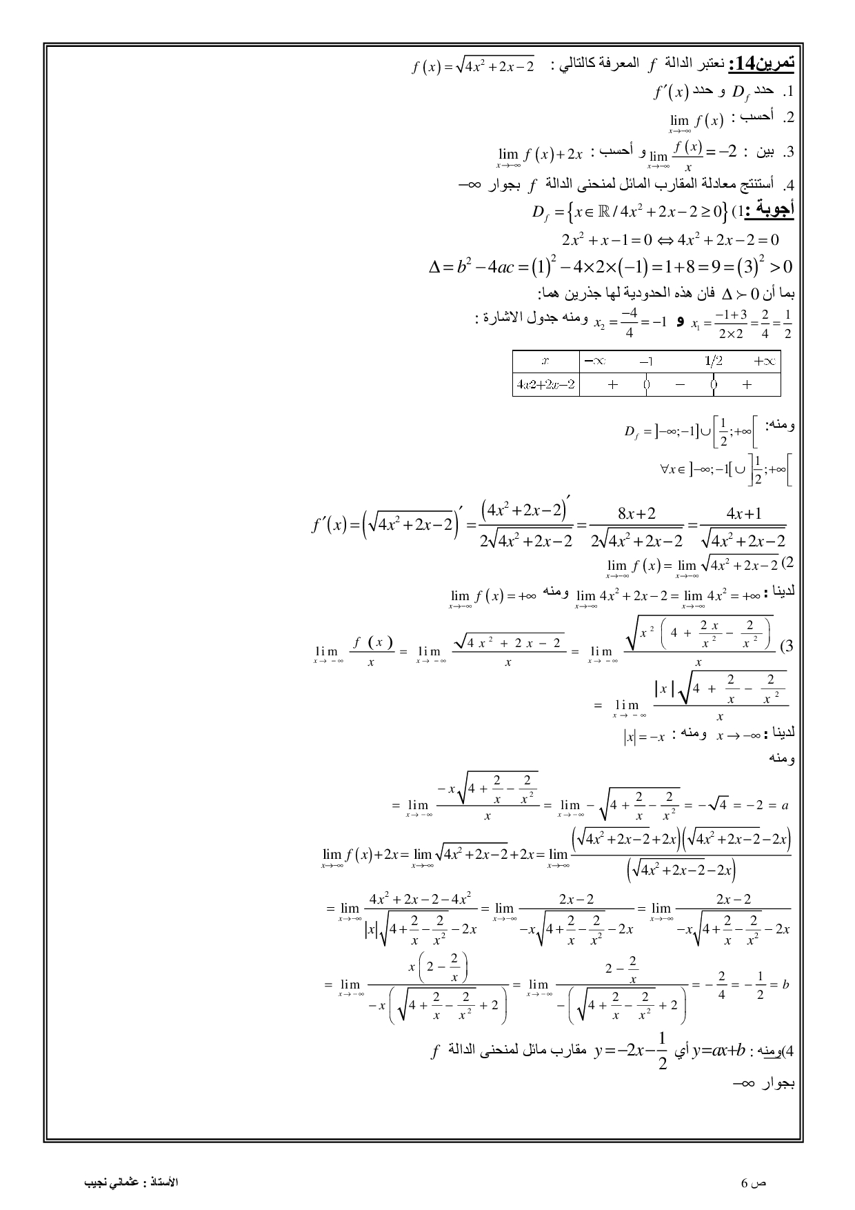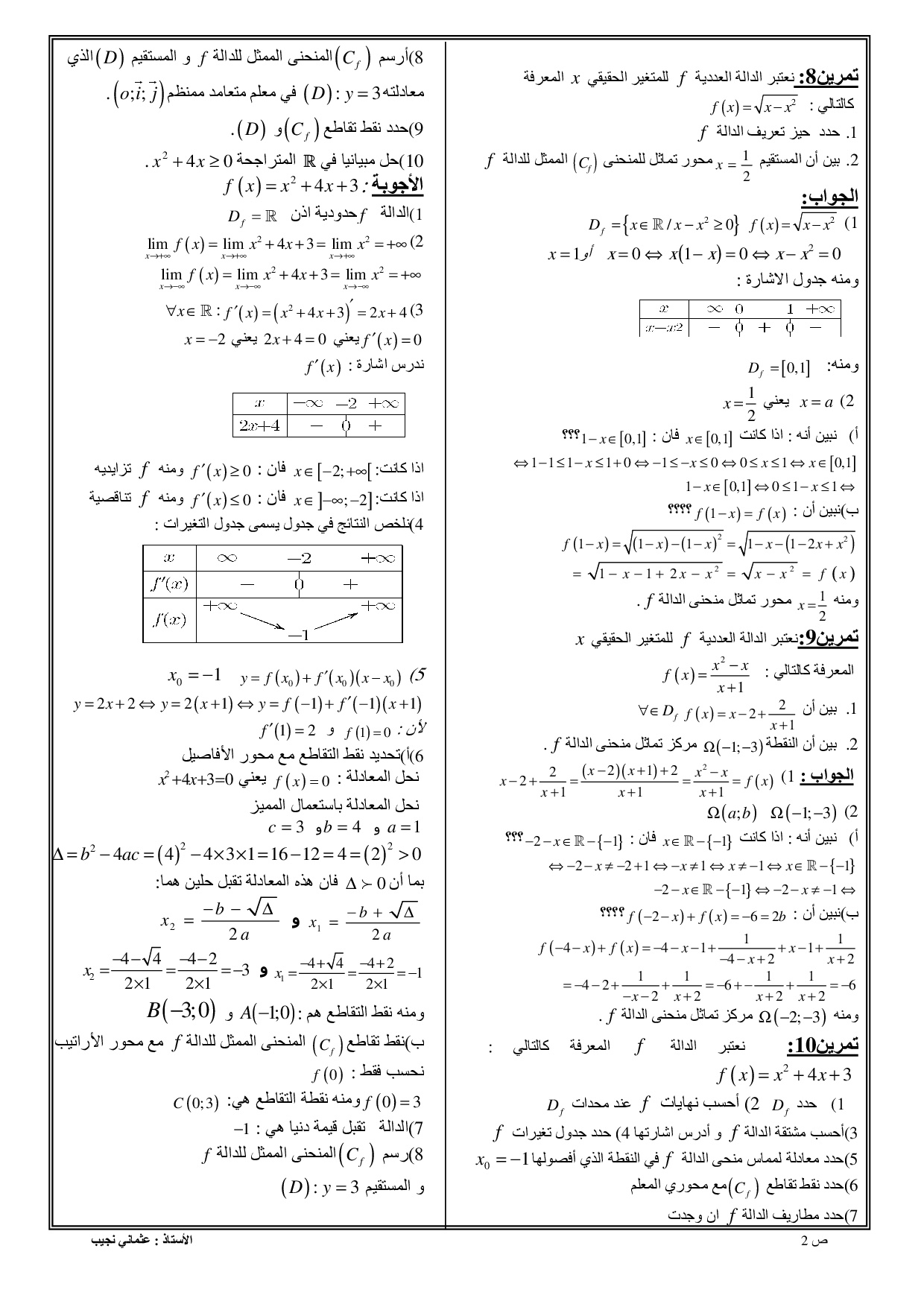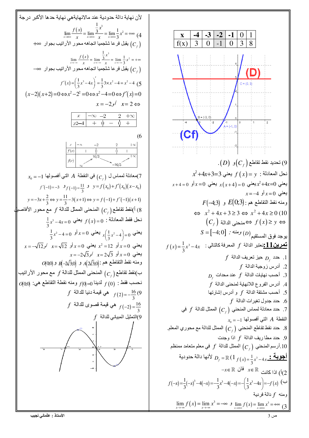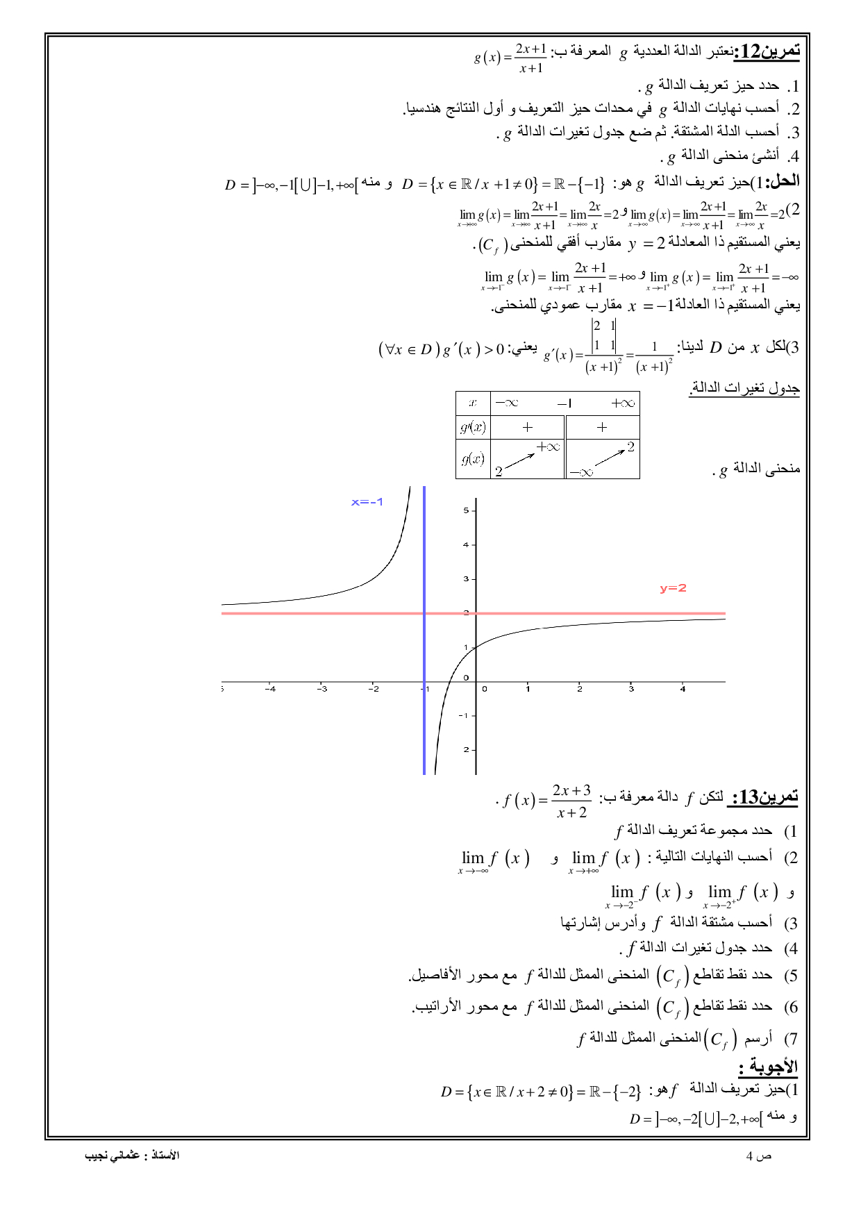دراسة الدوال وتمثيلها المبياني - تمارين محلولة 1