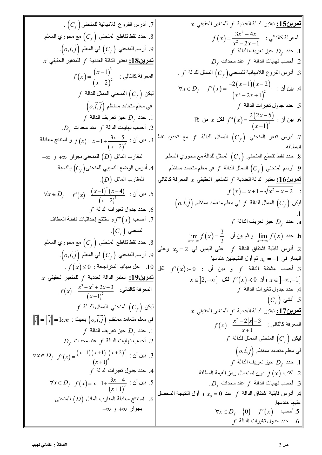 دراسة الدوال وتمثيلها المبياني - تمارين غير محلولة 2