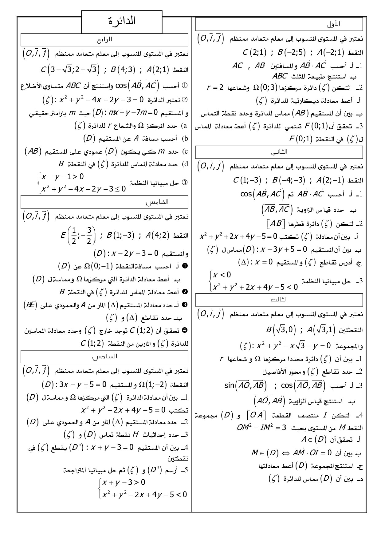 تحليلية الجداء السلمي وتطبيقاته - تمارين غير محلولة 5