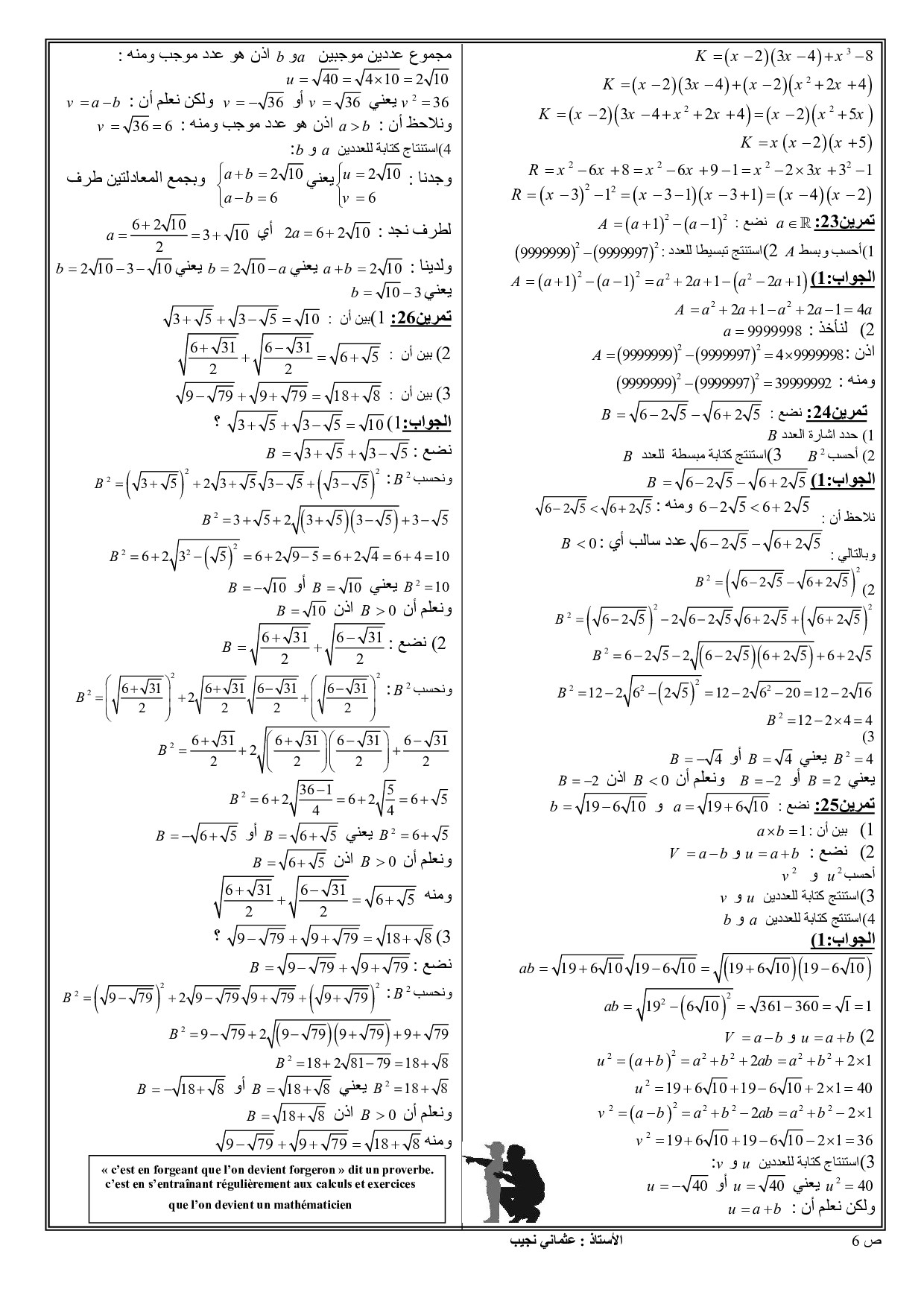 المجموعات IR , Q , ID , Z , IN - تمارين محلولة 2
