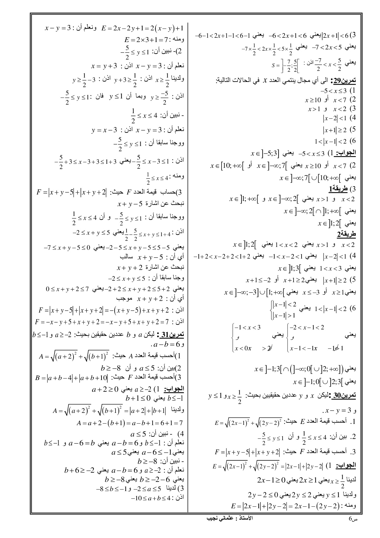 الترتيب في المجموعة IR - تمارين محلولة 3
