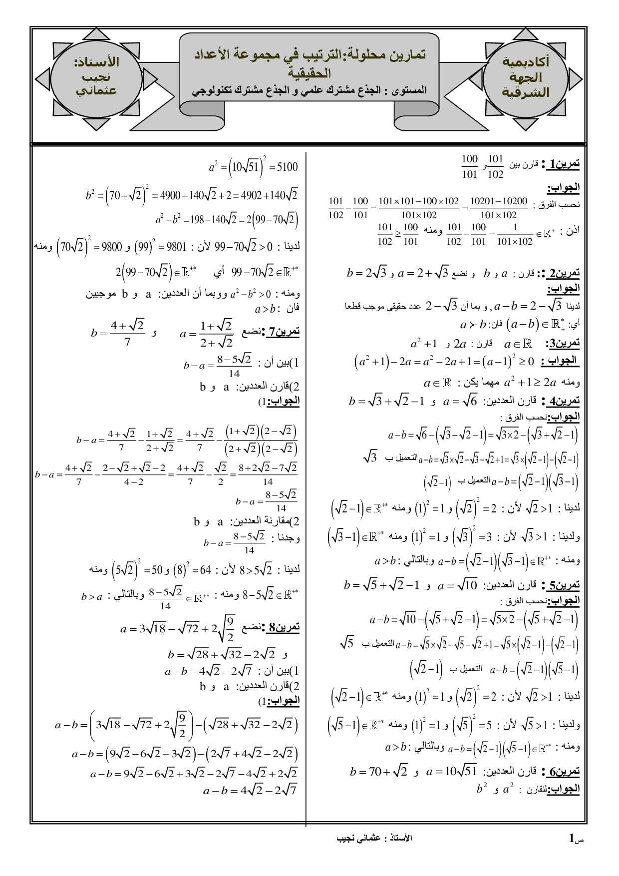 الترتيب في المجموعة IR - تمارين محلولة 3