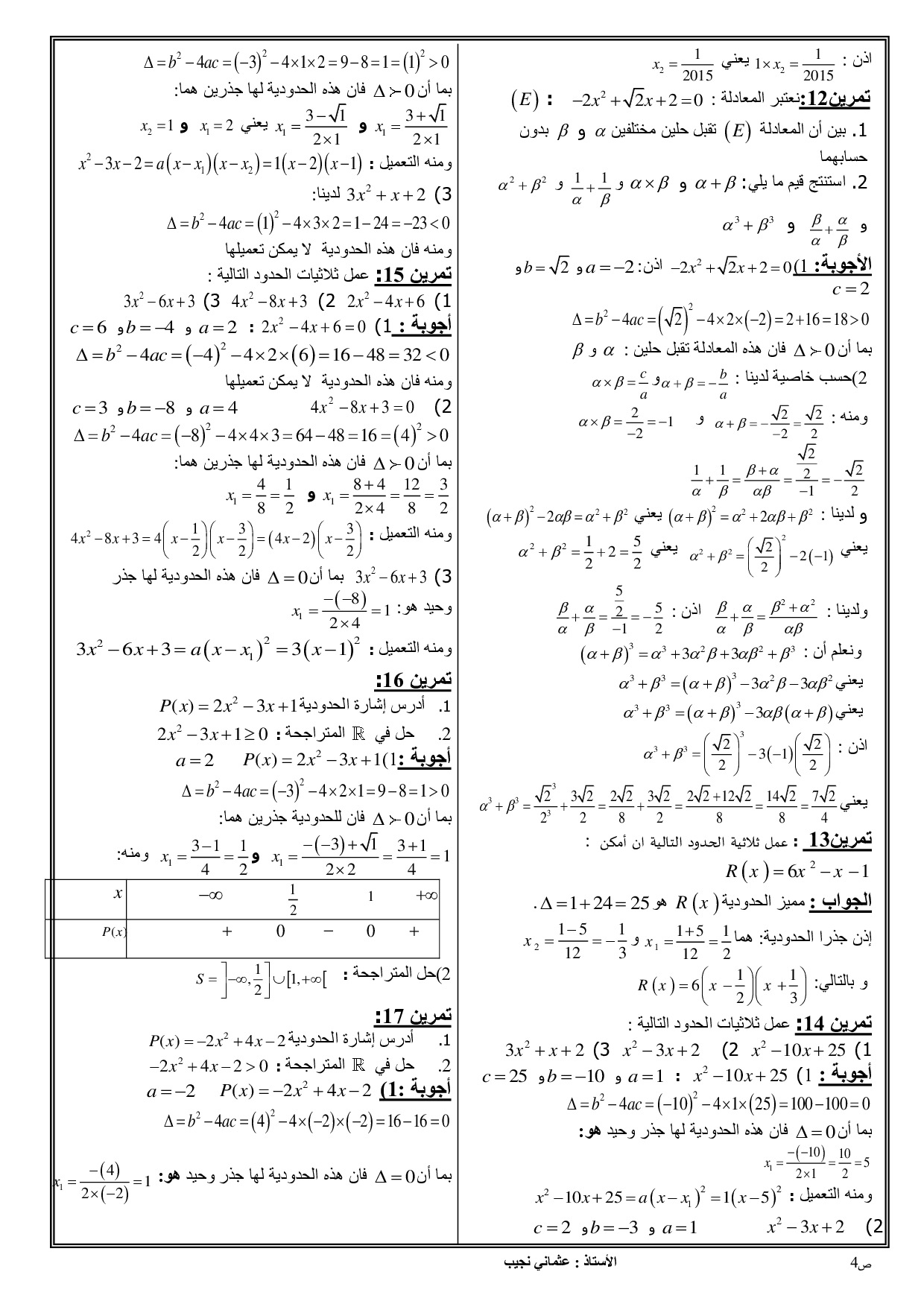 المعادلات والمتراجحات والنظمات - تمارين محلولة 1
