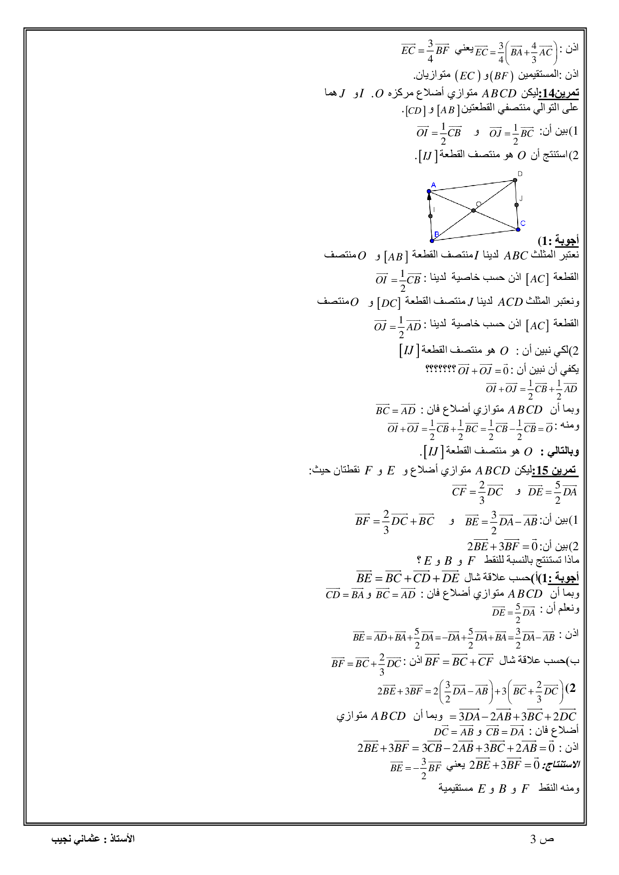 الحساب المتجهي في المستوى - تمارين محلولة 2