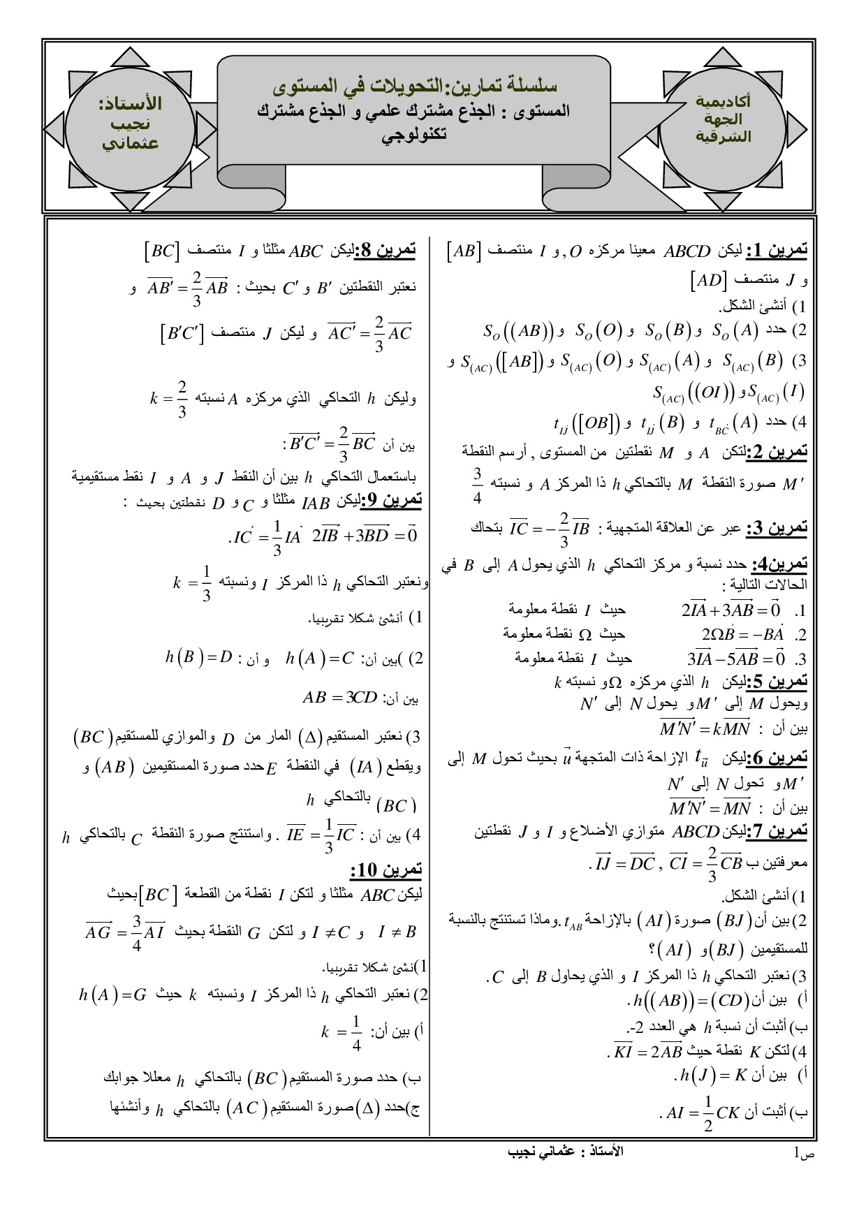 التحويلات في المستوى - تمارين غير محلولة 2