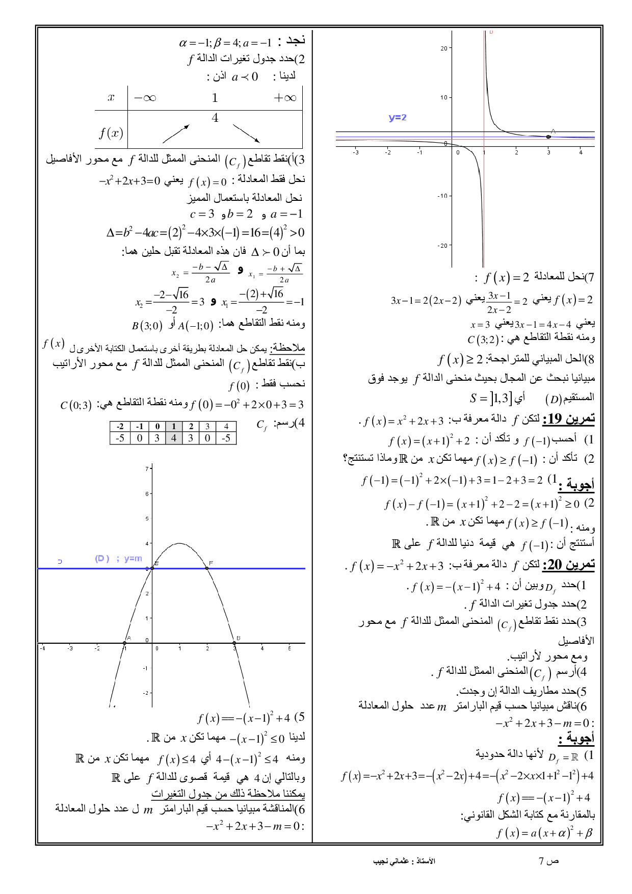 الدوال العددية - تمارين محلولة 4
