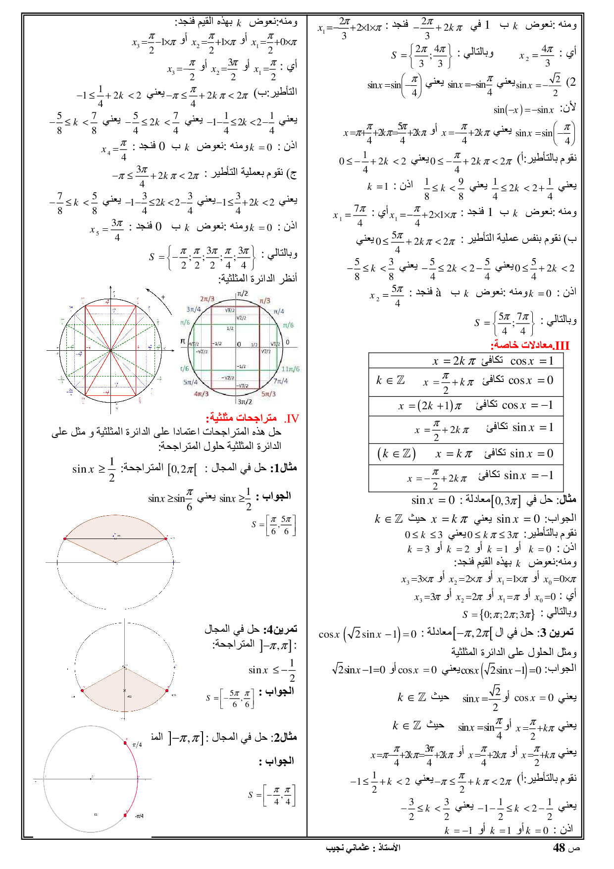 المعادلات والمتراجحات المثلثية - الدرس 2
