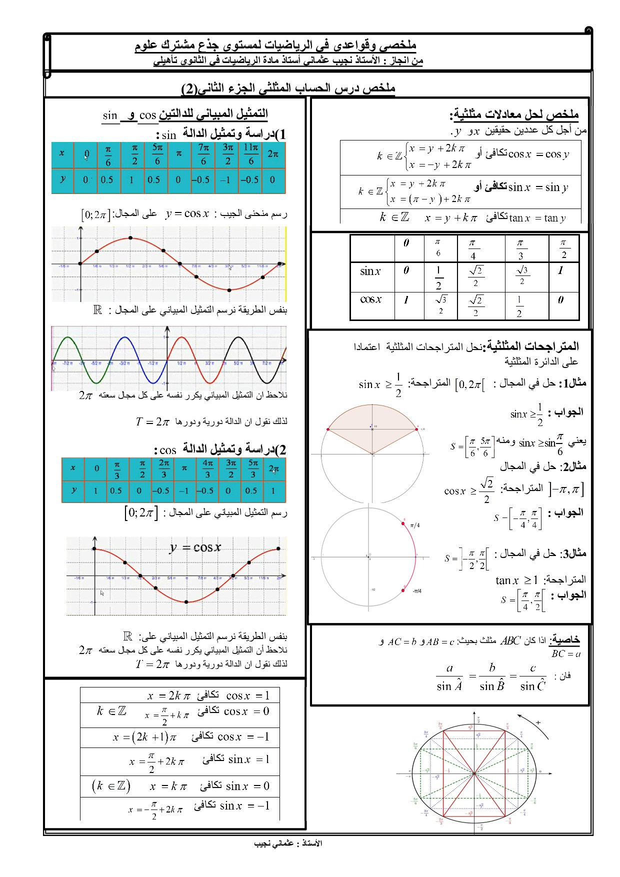 المعادلات والمتراجحات المثلثية - ملخص الدرس 1