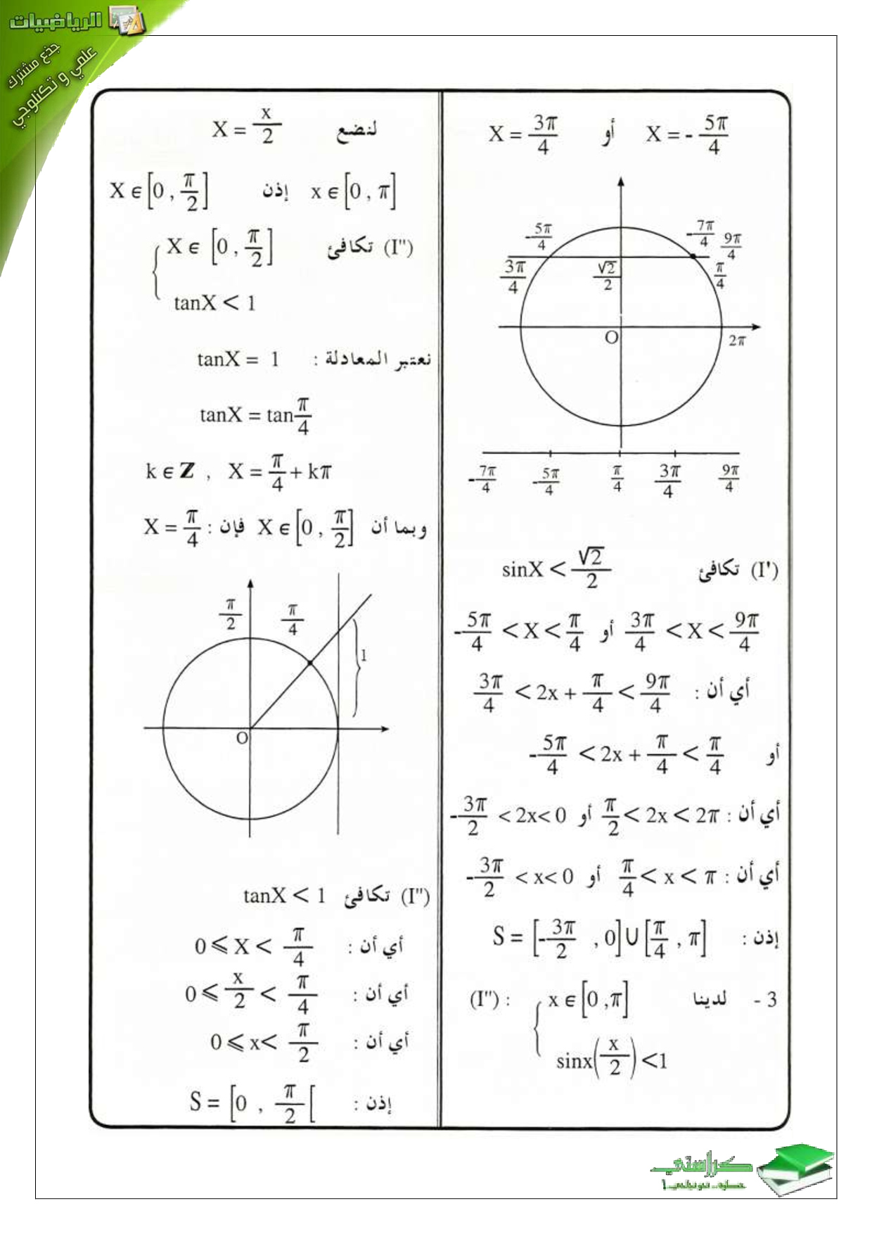 الحساب المثلثي 2 (المعادلات والمتراجحات المثلثية)