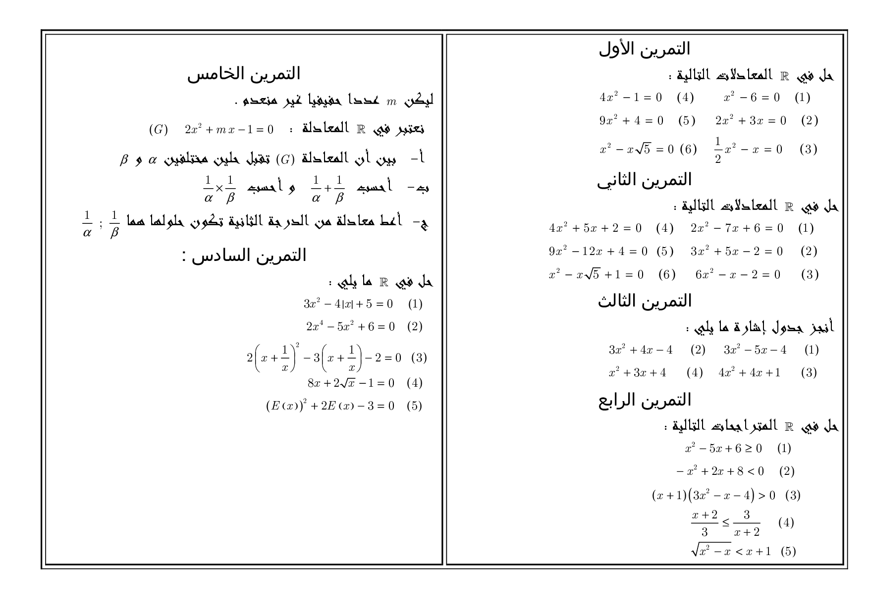المعادلات والمتراجحات والنظمات - تمارين غير محلولة 6