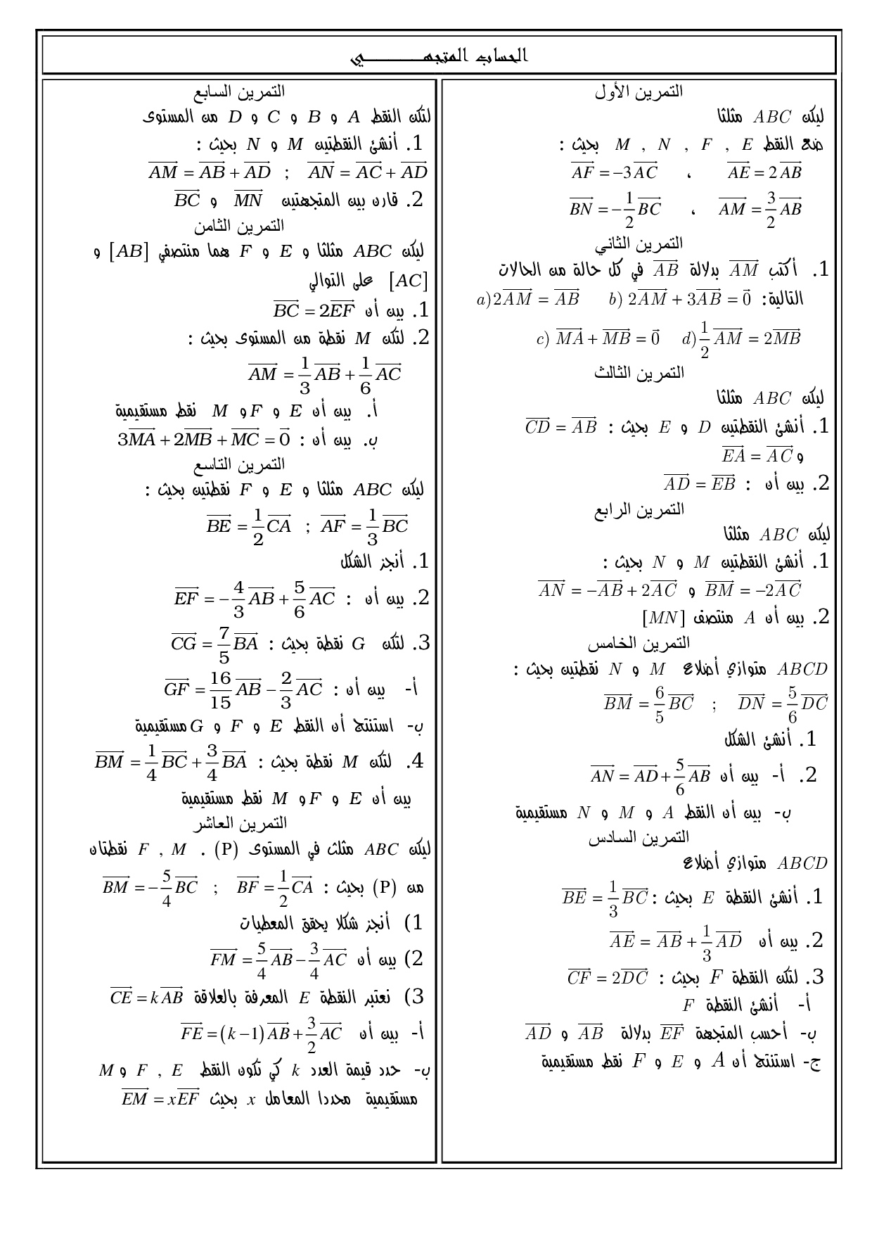 الحساب المتجهي في المستوى - تمارين غير محلولة 4
