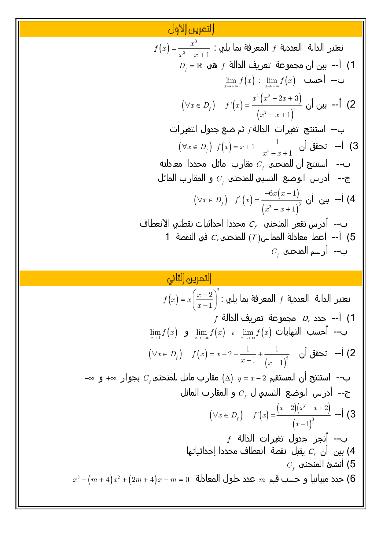 الفرض 3 نموذج 7 - الرياضيات أولى باك علوم تجريبية الدورة الثانية