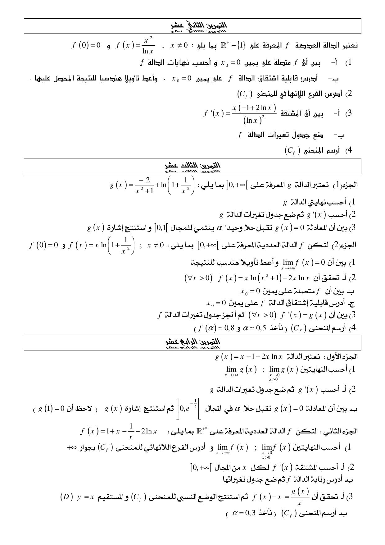 الدوال اللوغاريتمية - تمارين غير محلولة 9