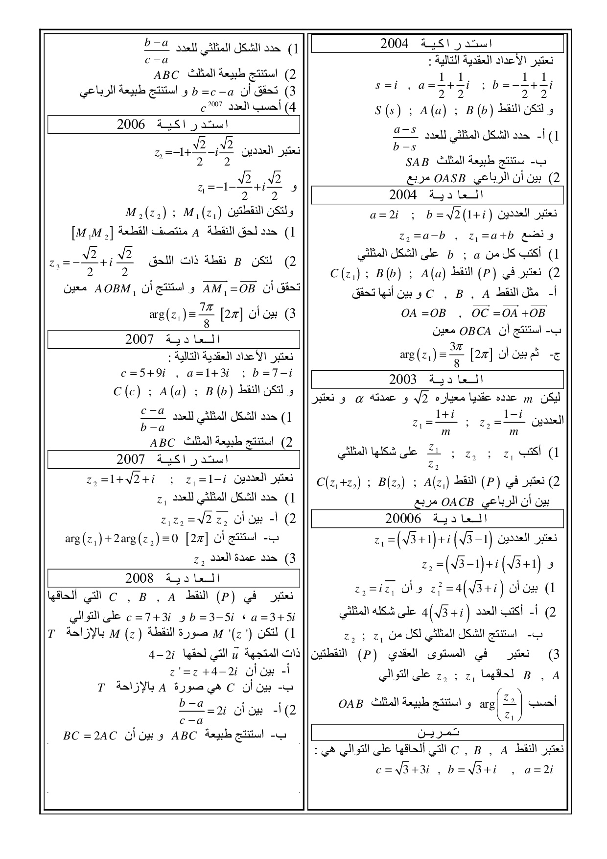 الأعداد العقدية 2 - تمارين غير محلولة 7