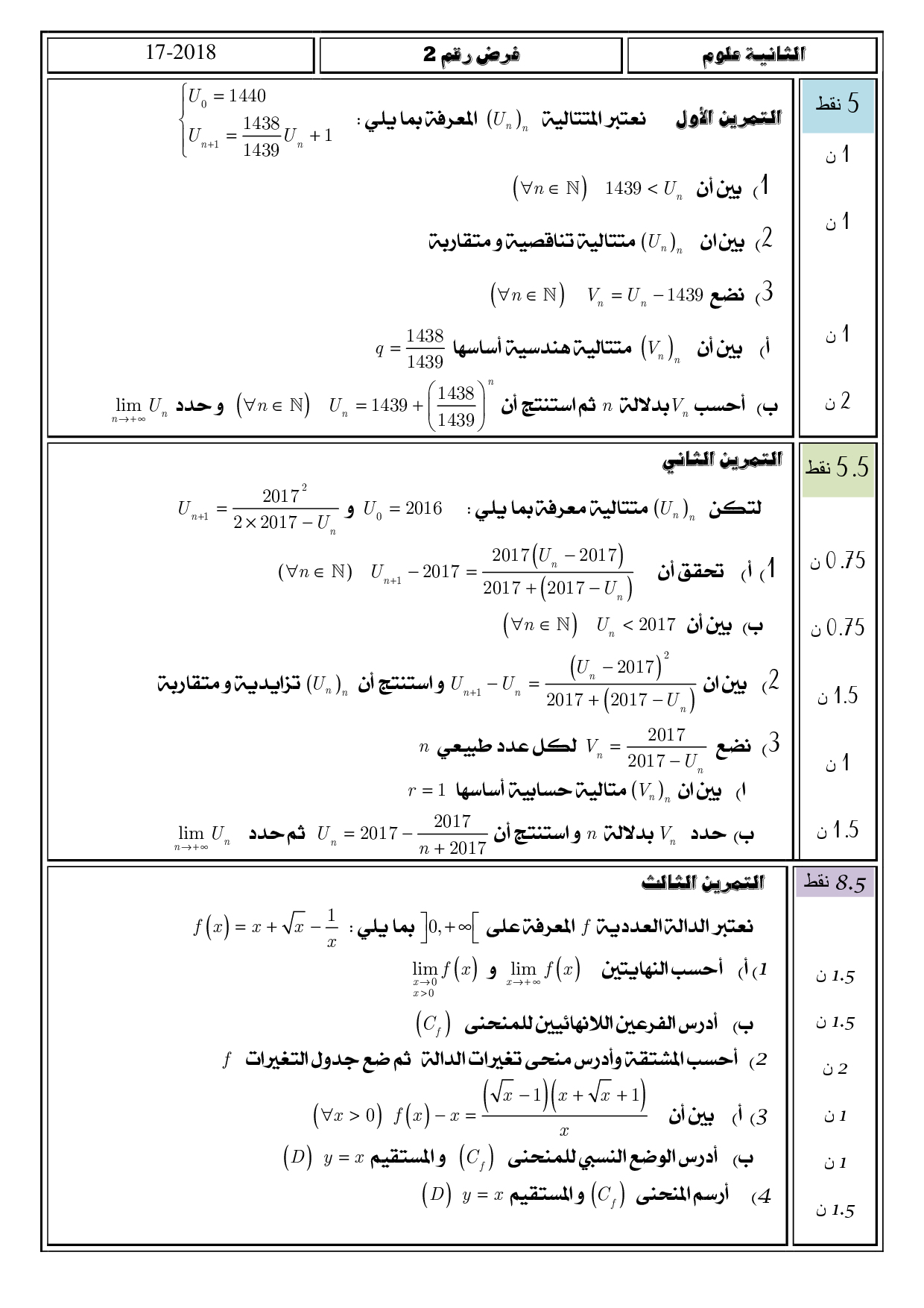 الفرض 2 نموذج 11 - الرياضيات ثانية باك علوم وتقنيات الدورة الأولى