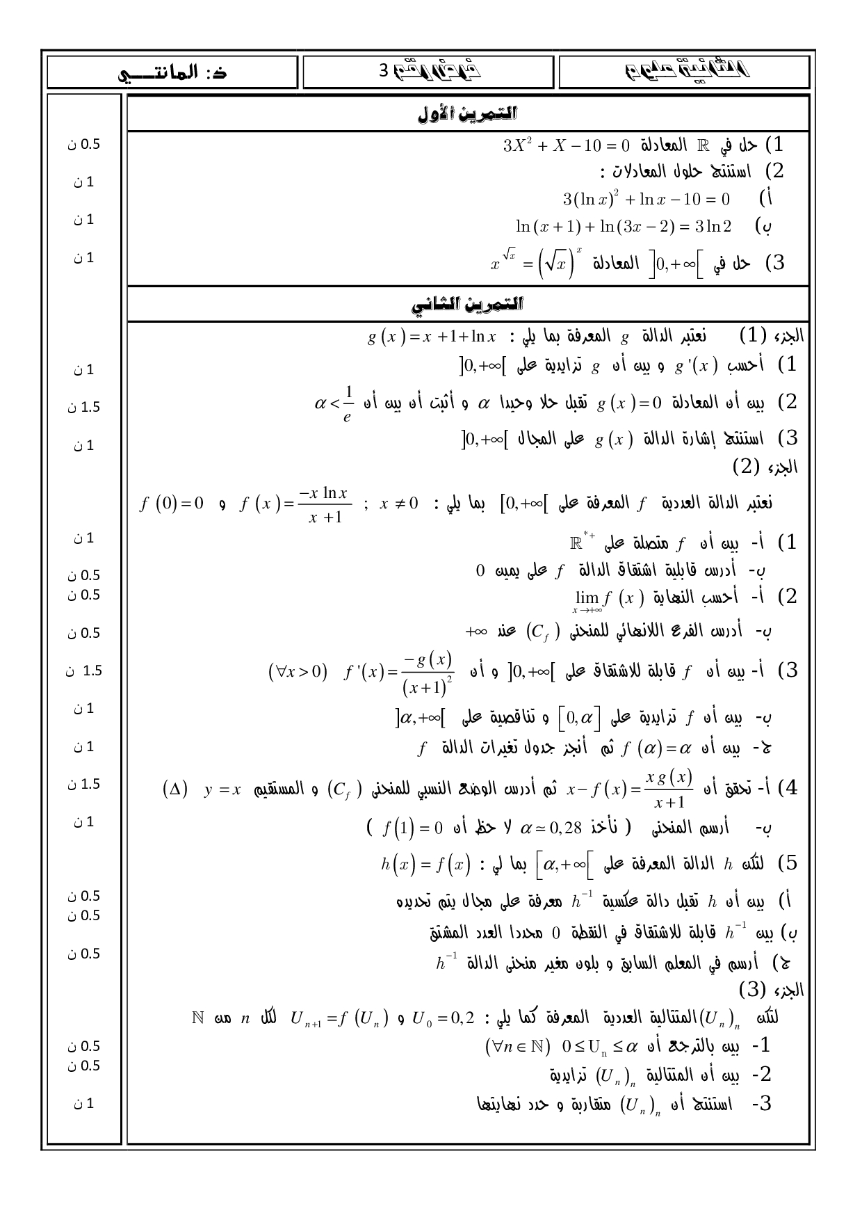 الفرض 3 نموذج 11 - الرياضيات ثانية باك علوم وتقنيات الدورة الأولى