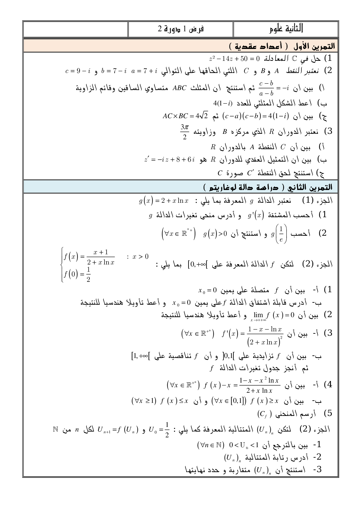 الفرض 1 نموذج 16 - الرياضيات ثانية باك علوم وتقنيات الدورة الثانية
