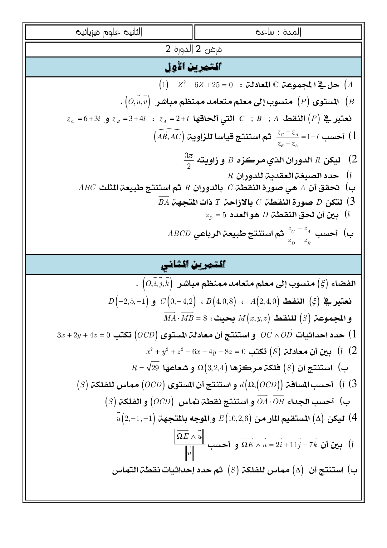 فروض الدورة الثانية