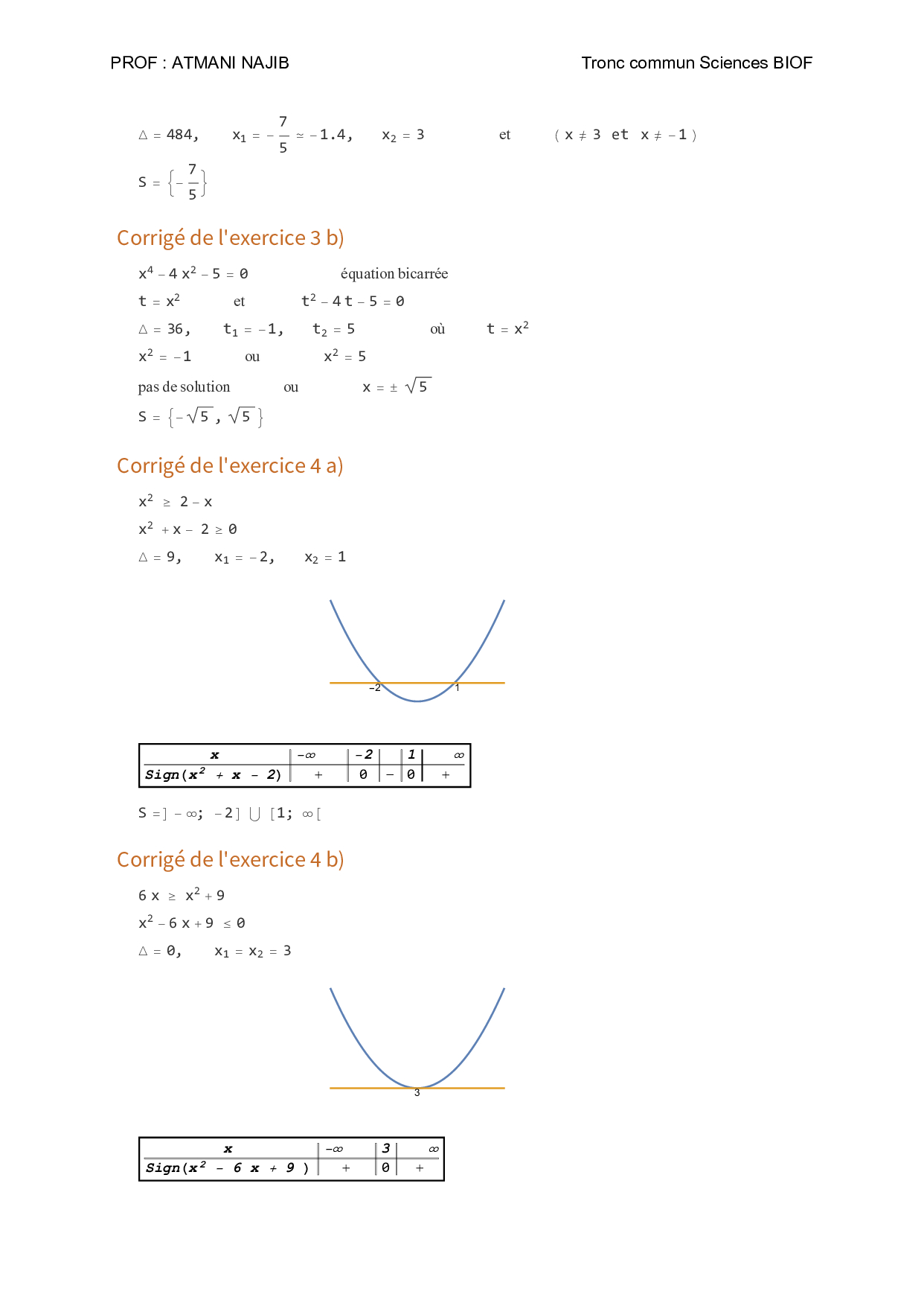 Équations et inéquations qui se ramènent au 2nd degré - Exercices corrigés