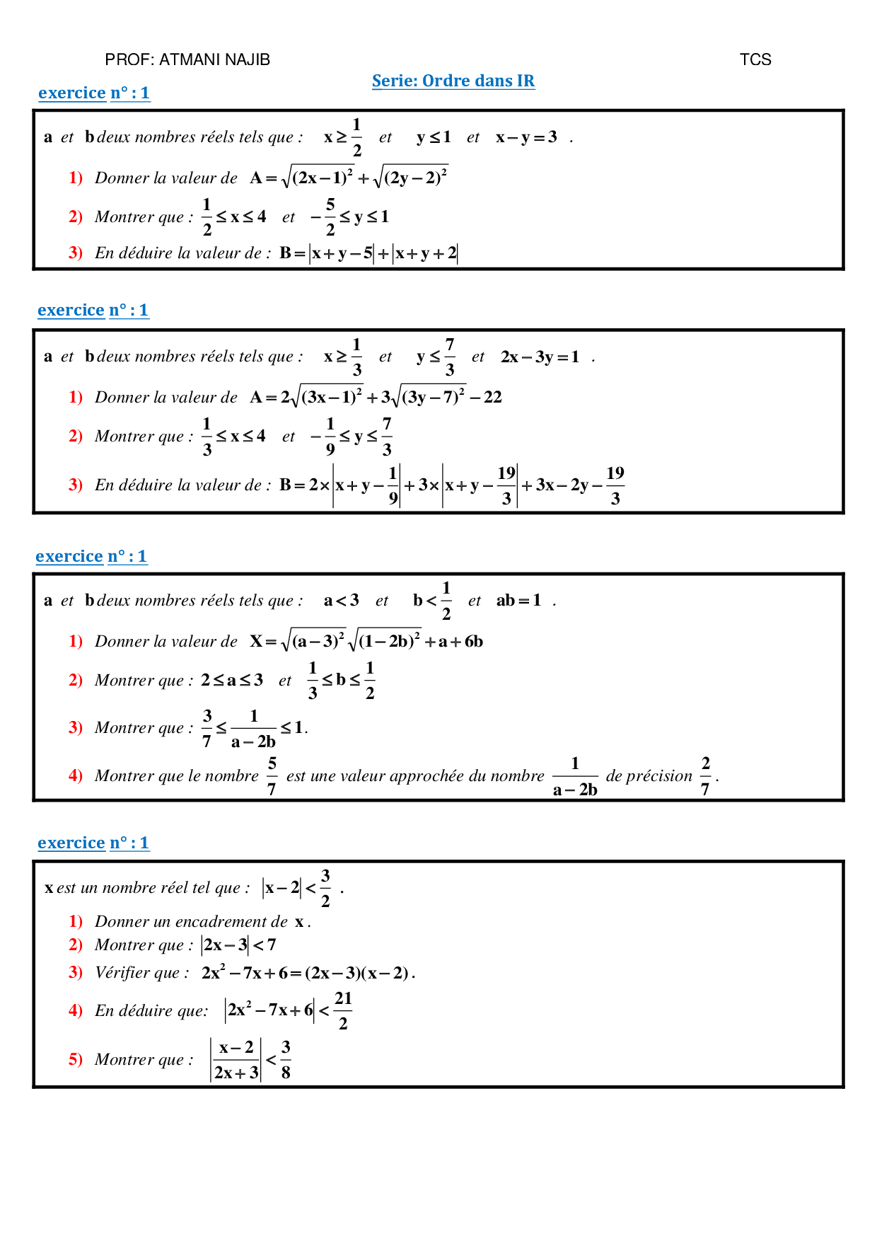 L'ordre dans IR - Exercices non corrigés 7