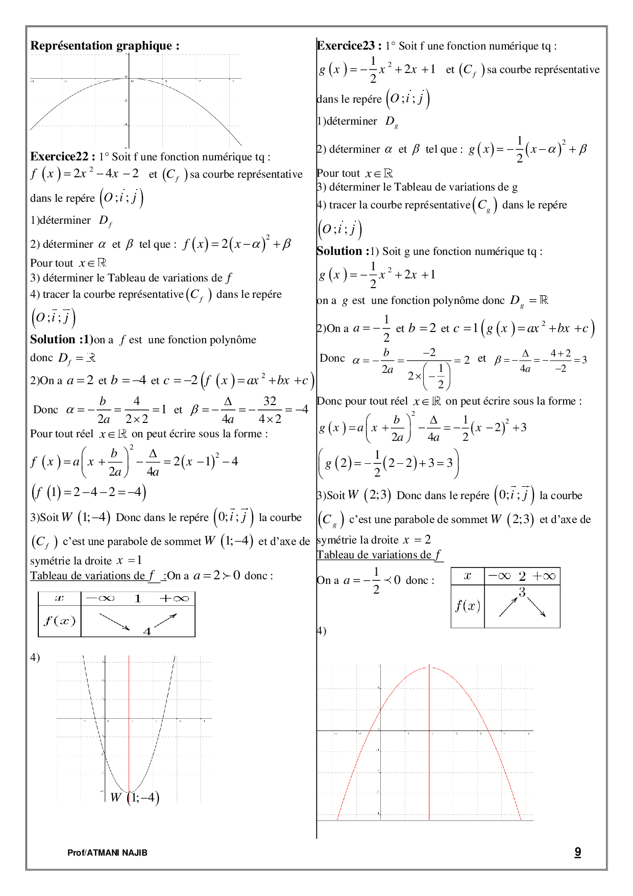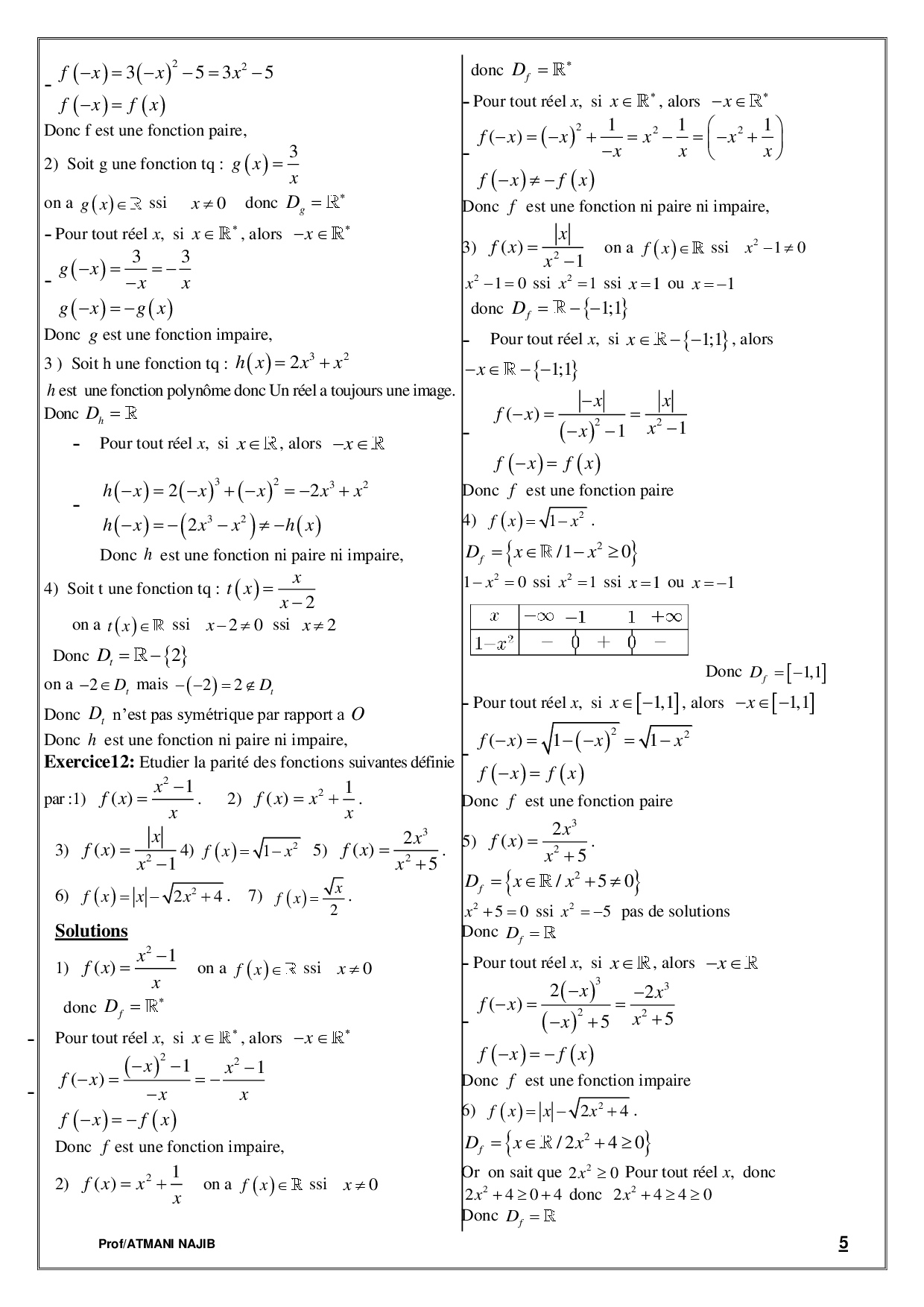 Généralités sur les fonctions - Exercices corrigés 1