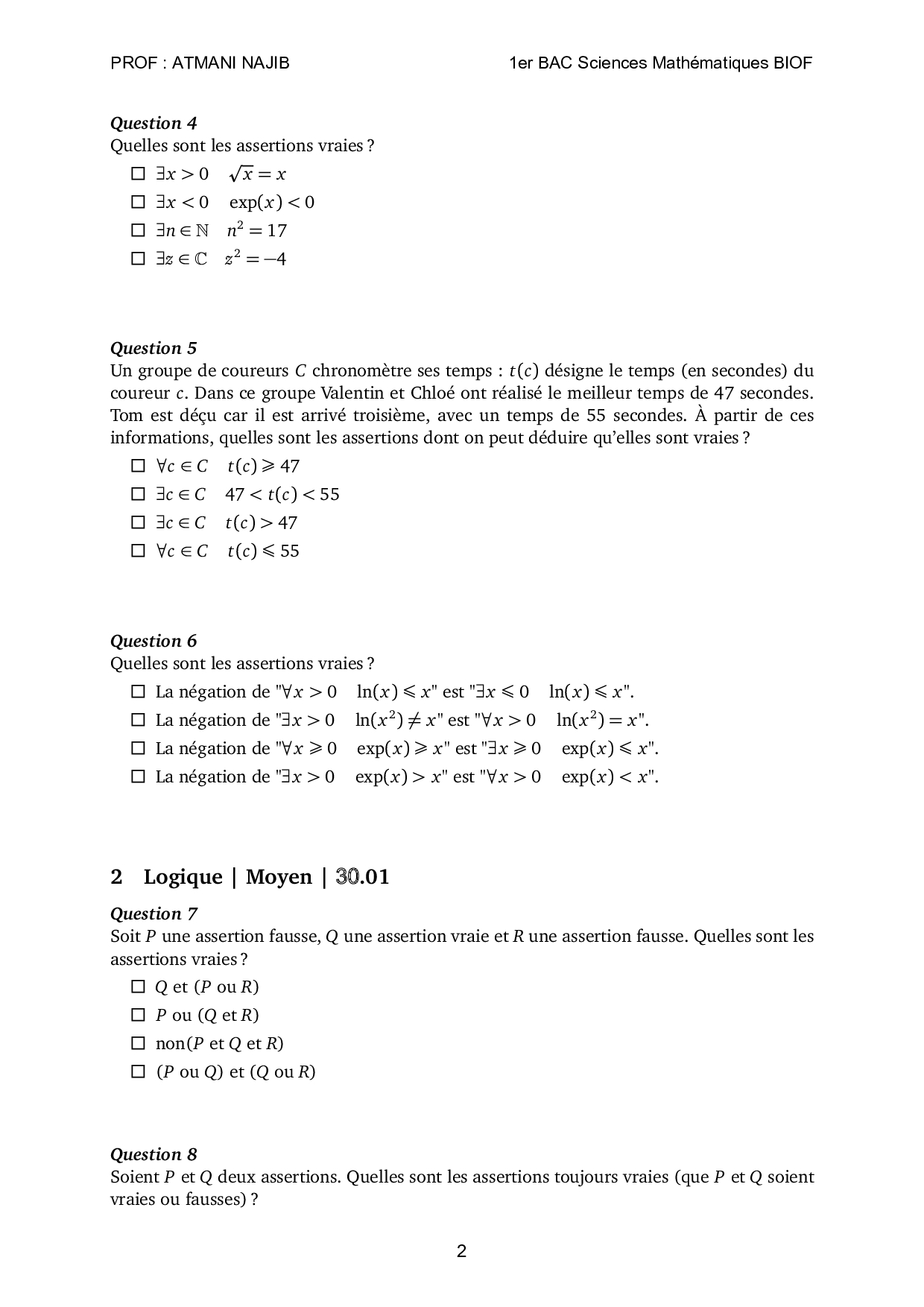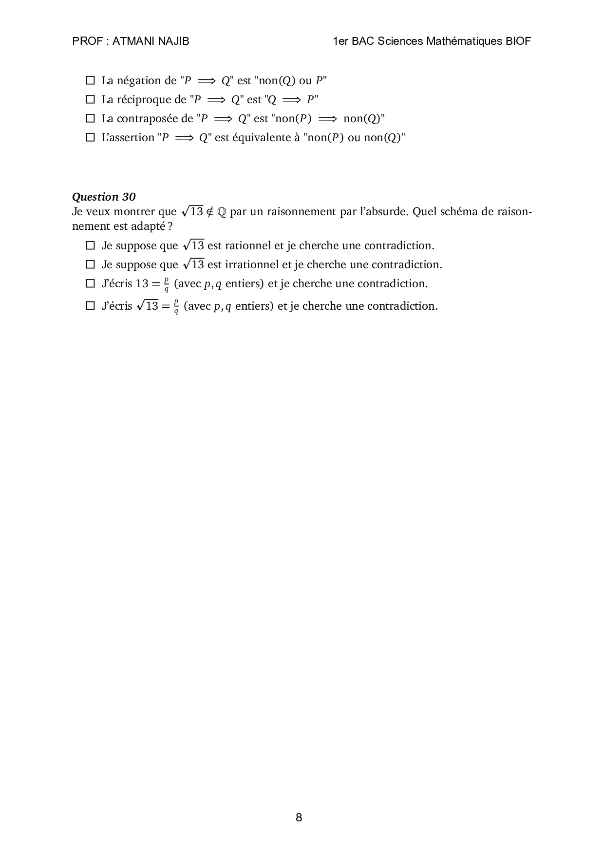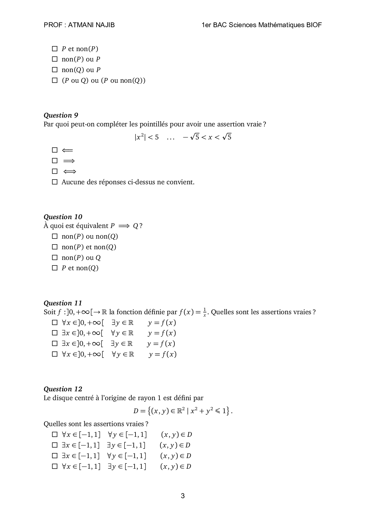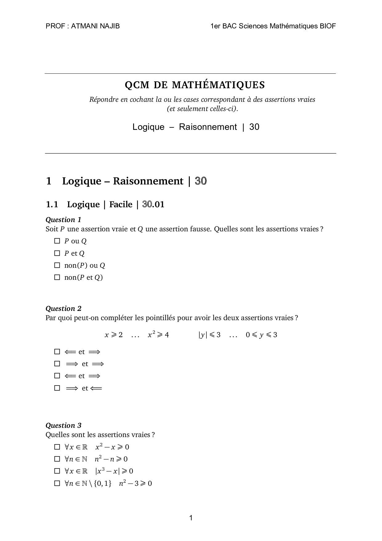 Mathématiques 1er BAC Sciences Mathématiques BIOF