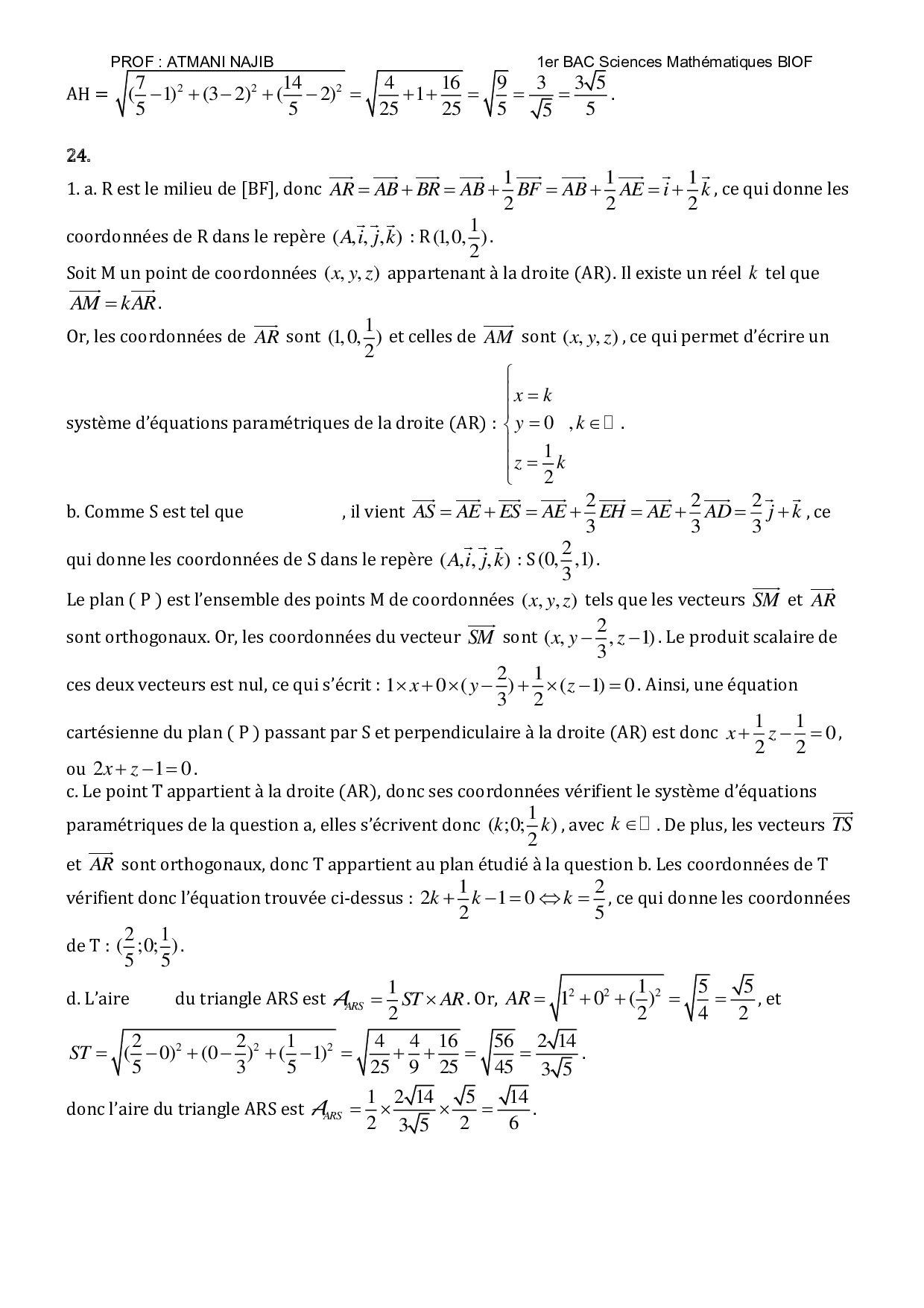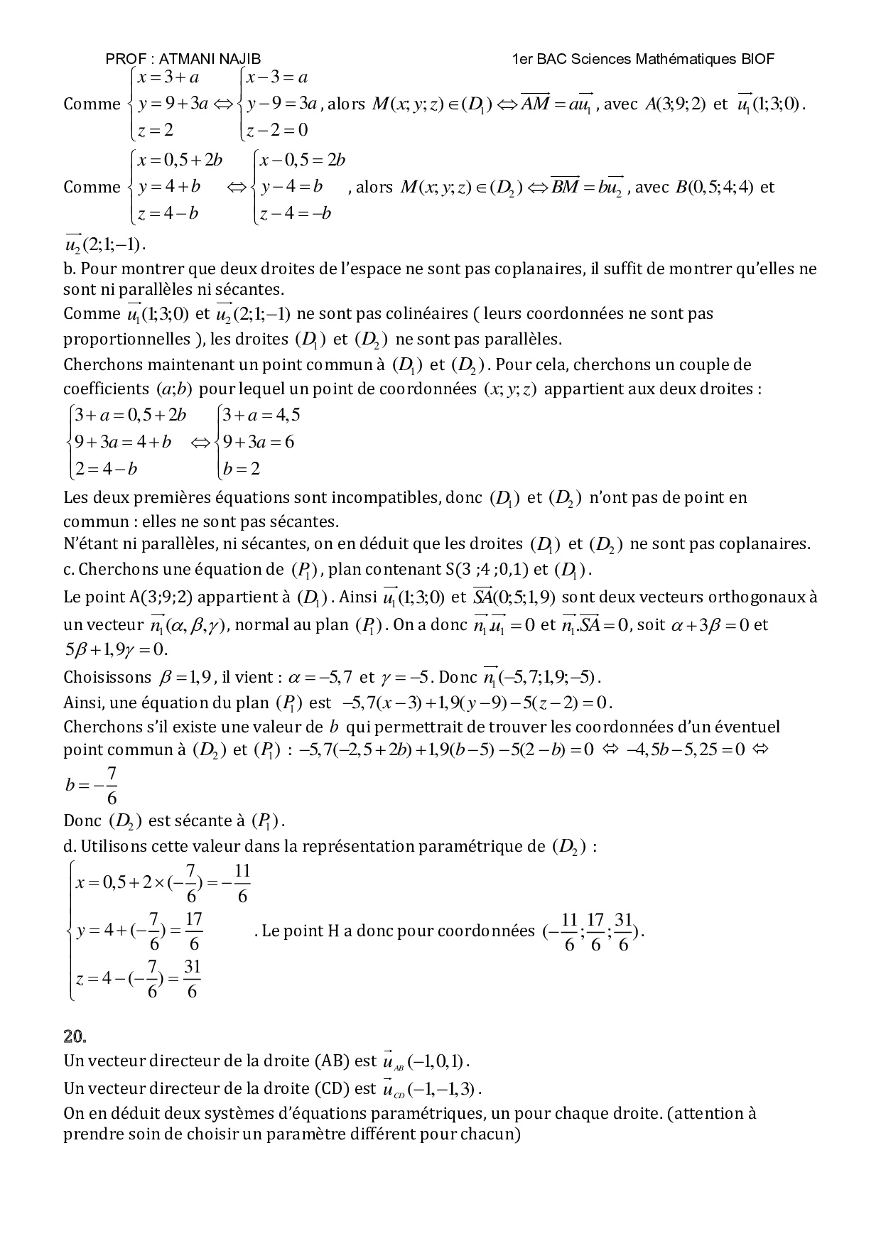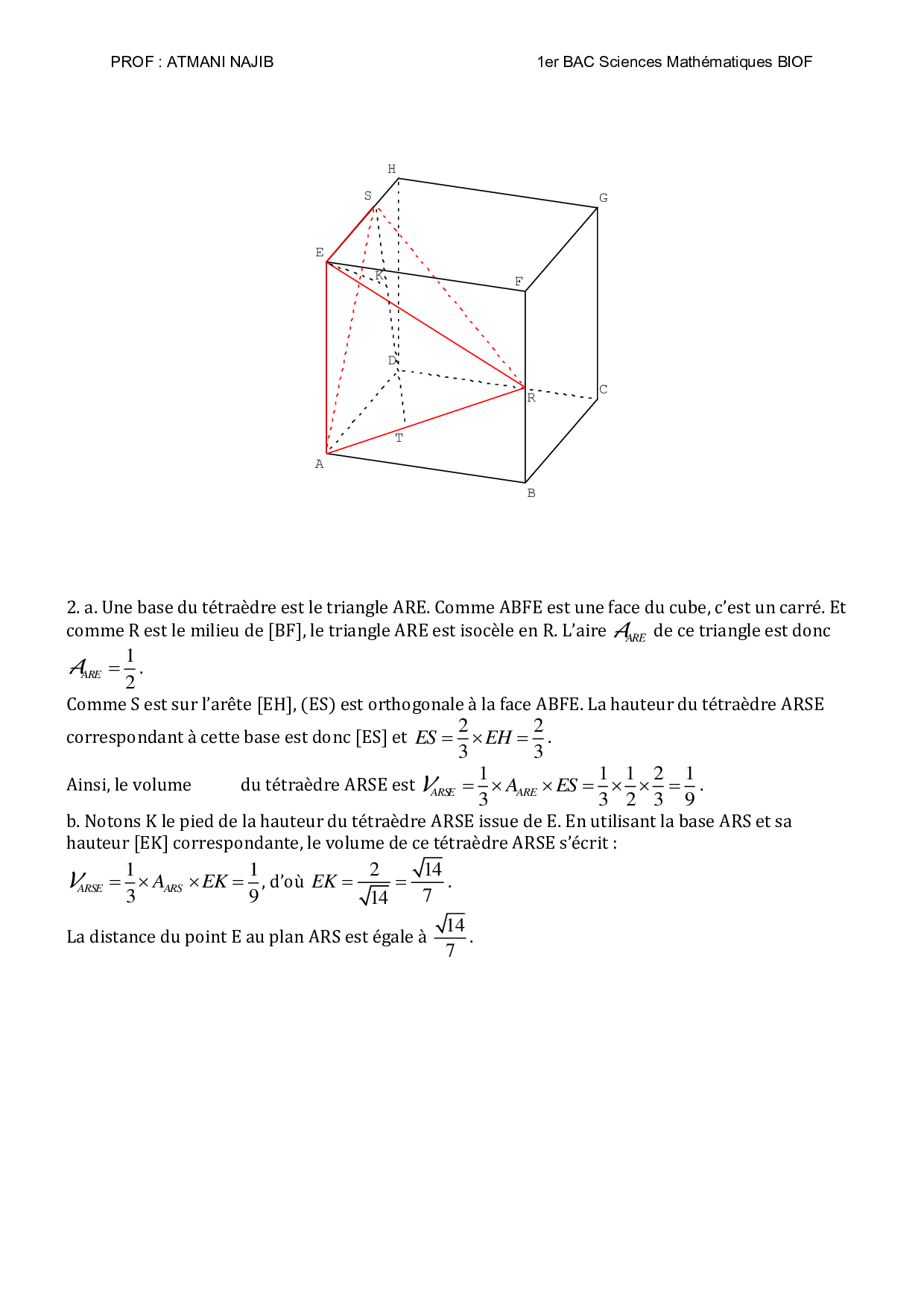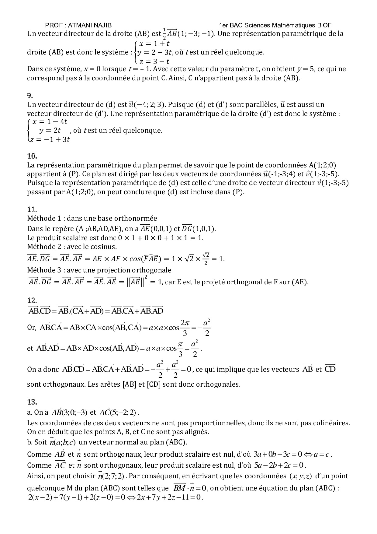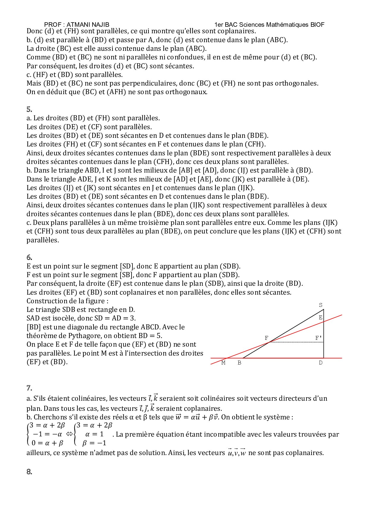 Géométrie dans l'espace - Corrigé série d'exercices 1