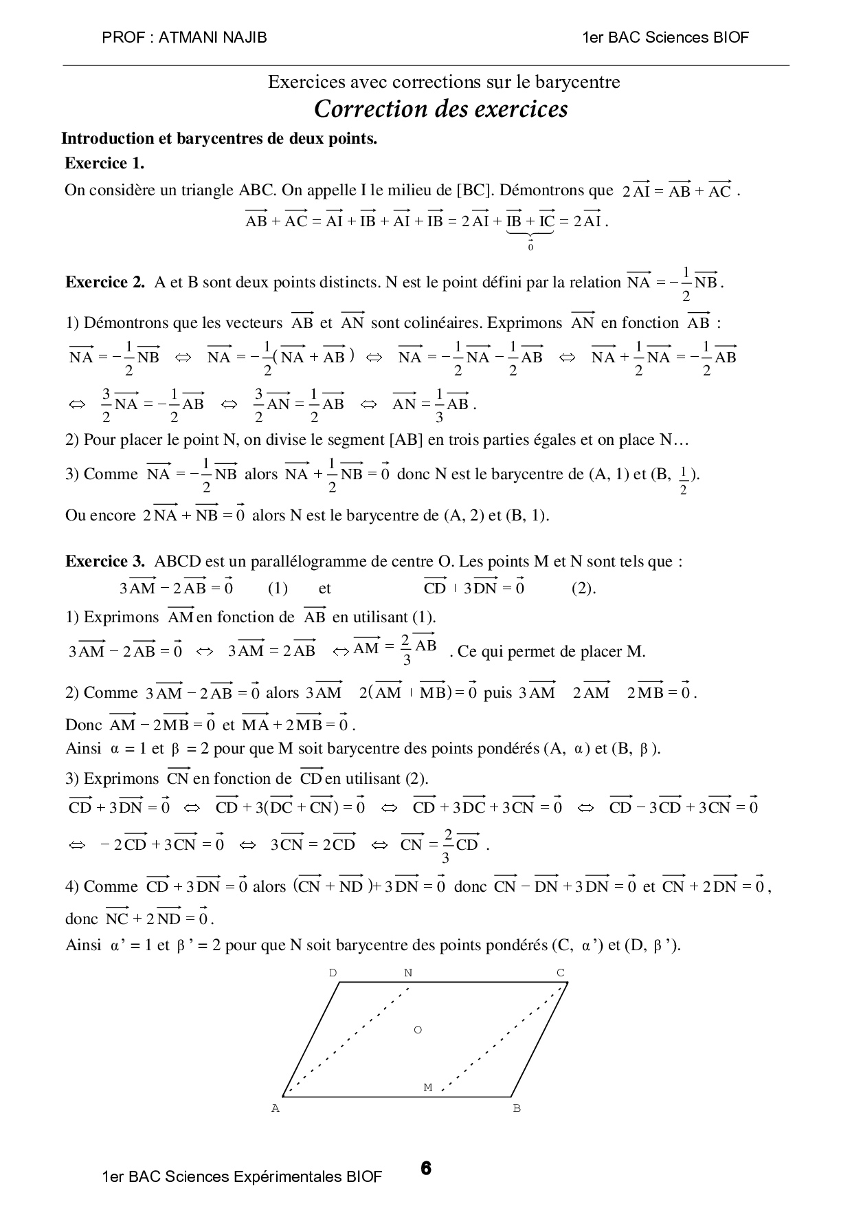 Le barycentre dans le plan - Corrigé série d'exercices 2