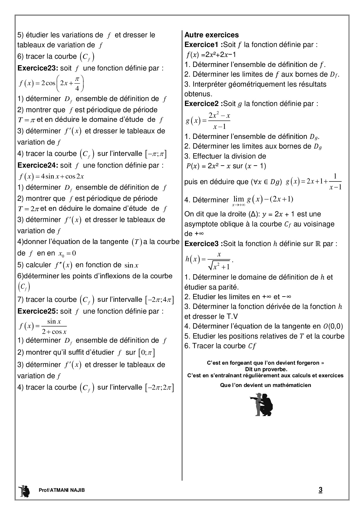 Étude des fonctions numériques - Série d'exercices 1
