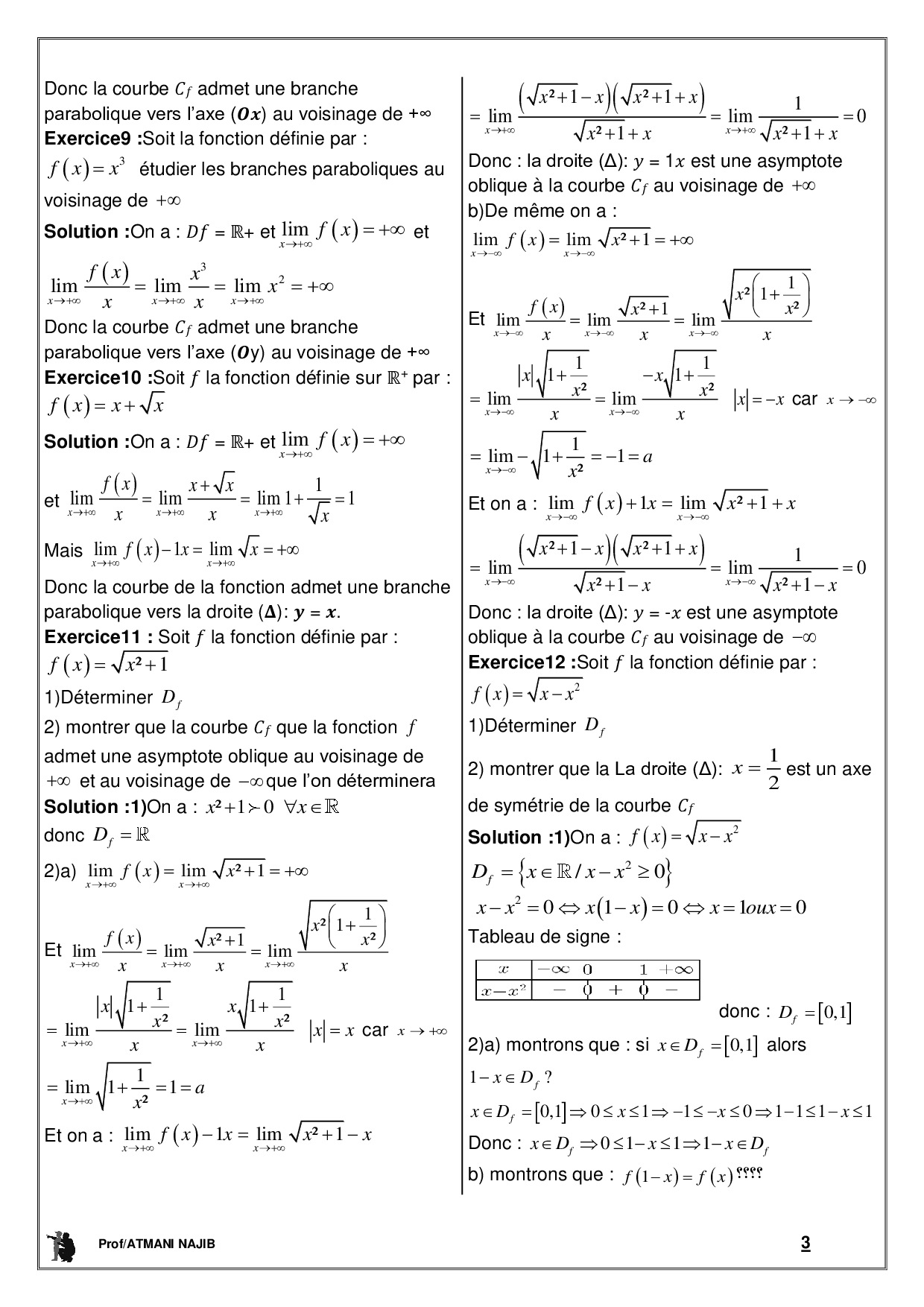 Étude des fonctions numériques - Corrigé série d'exercices 1