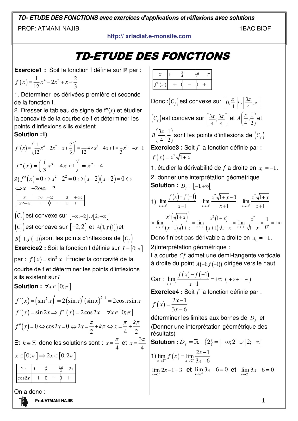 Étude des fonctions numériques - Corrigé série d'exercices 1