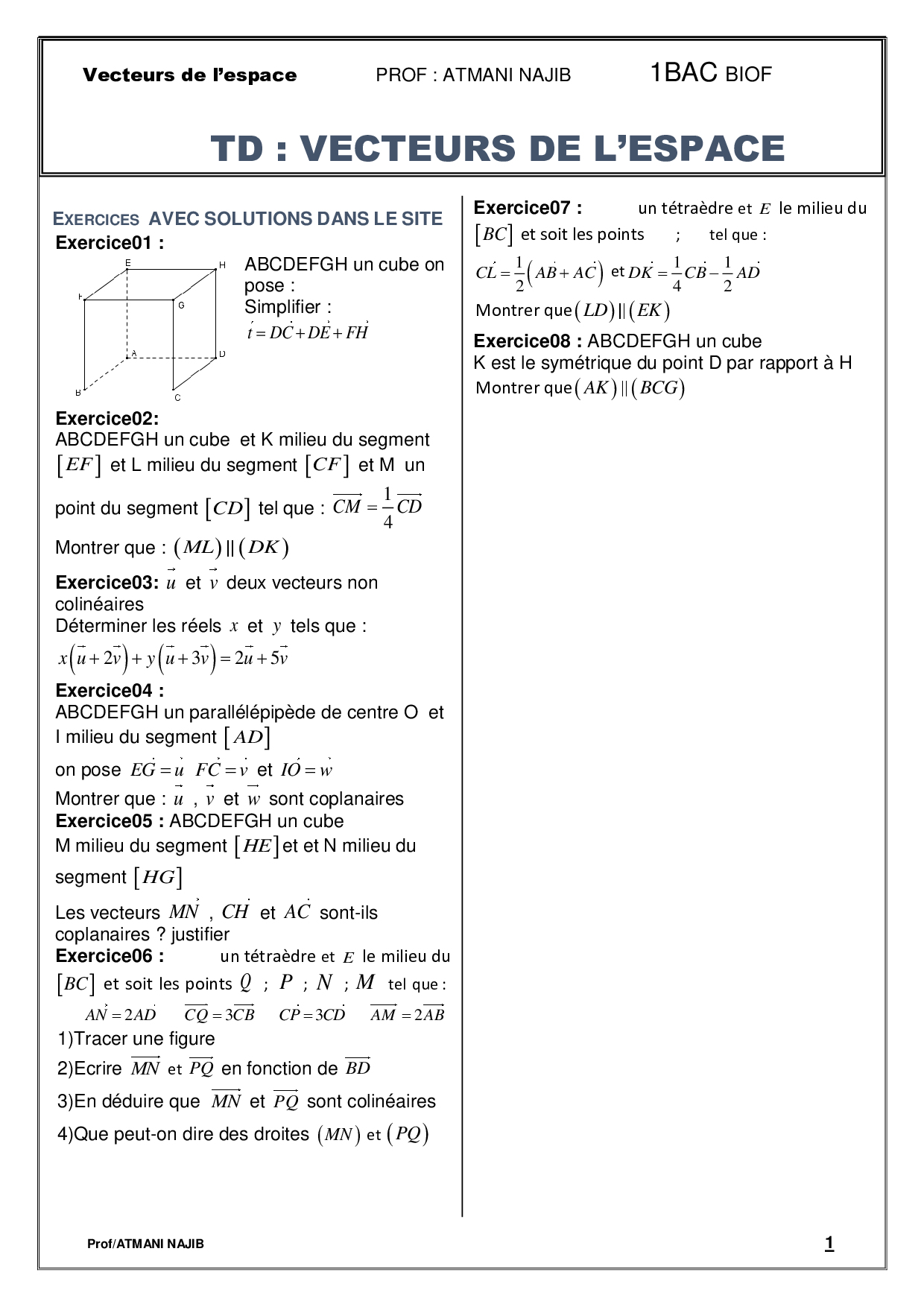 Mathématiques 1er BAC Sciences Expérimentales BIOF