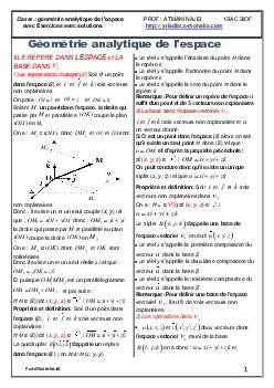 Géométrie analytique de l’espace - Cours et exercices corrigés