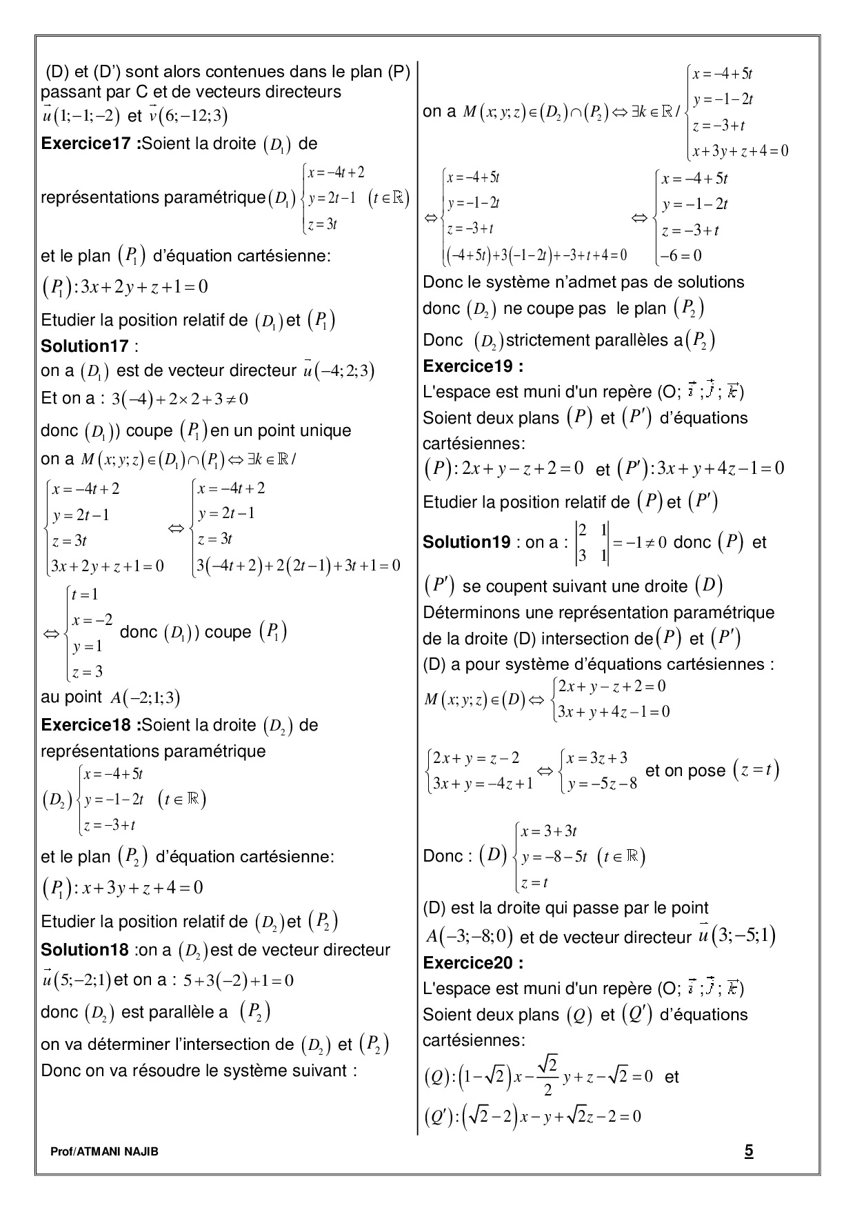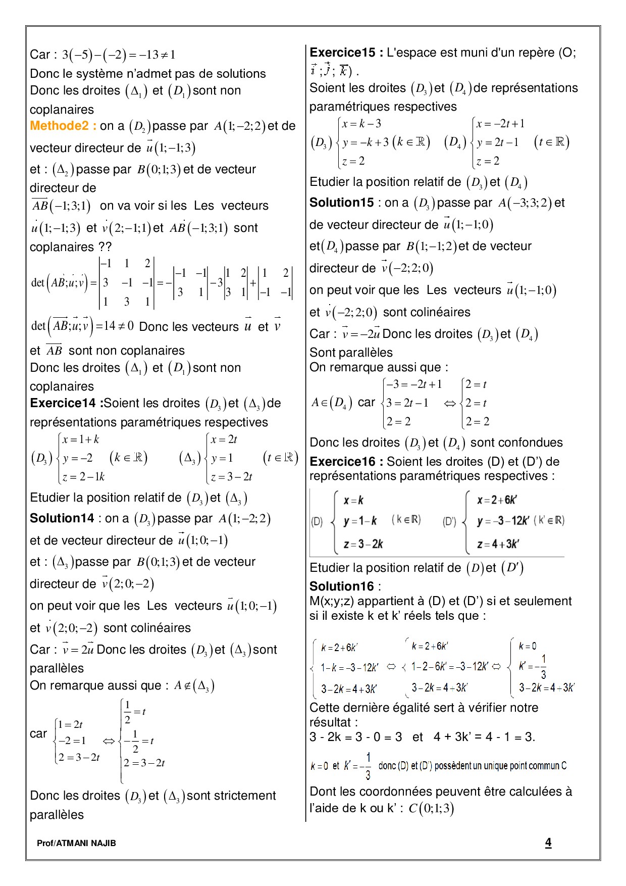 Géométrie analytique de l’espace - Corrigé série d'exercices 1