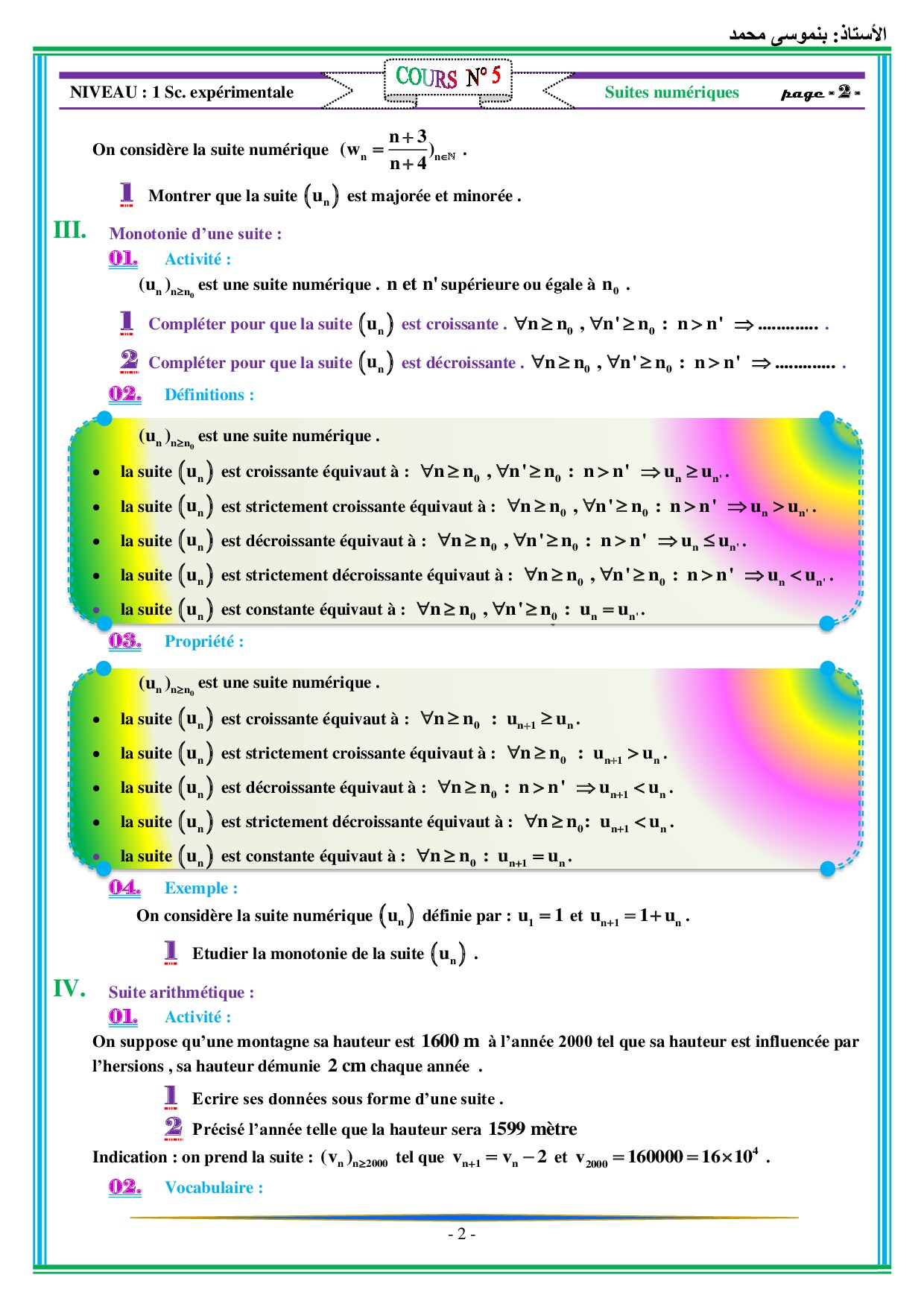 Les suites numériques - Cours 1