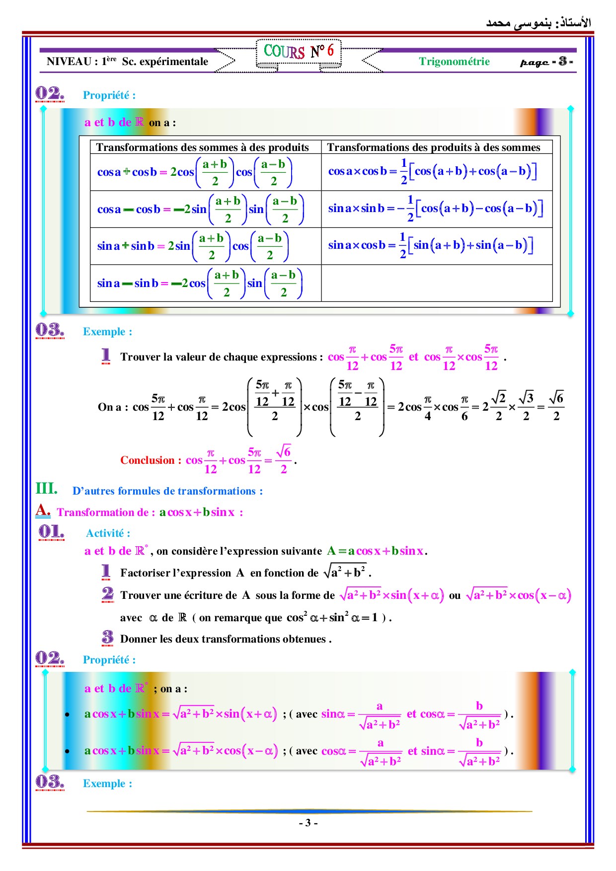 Calcul trigonométrique - Cours 1