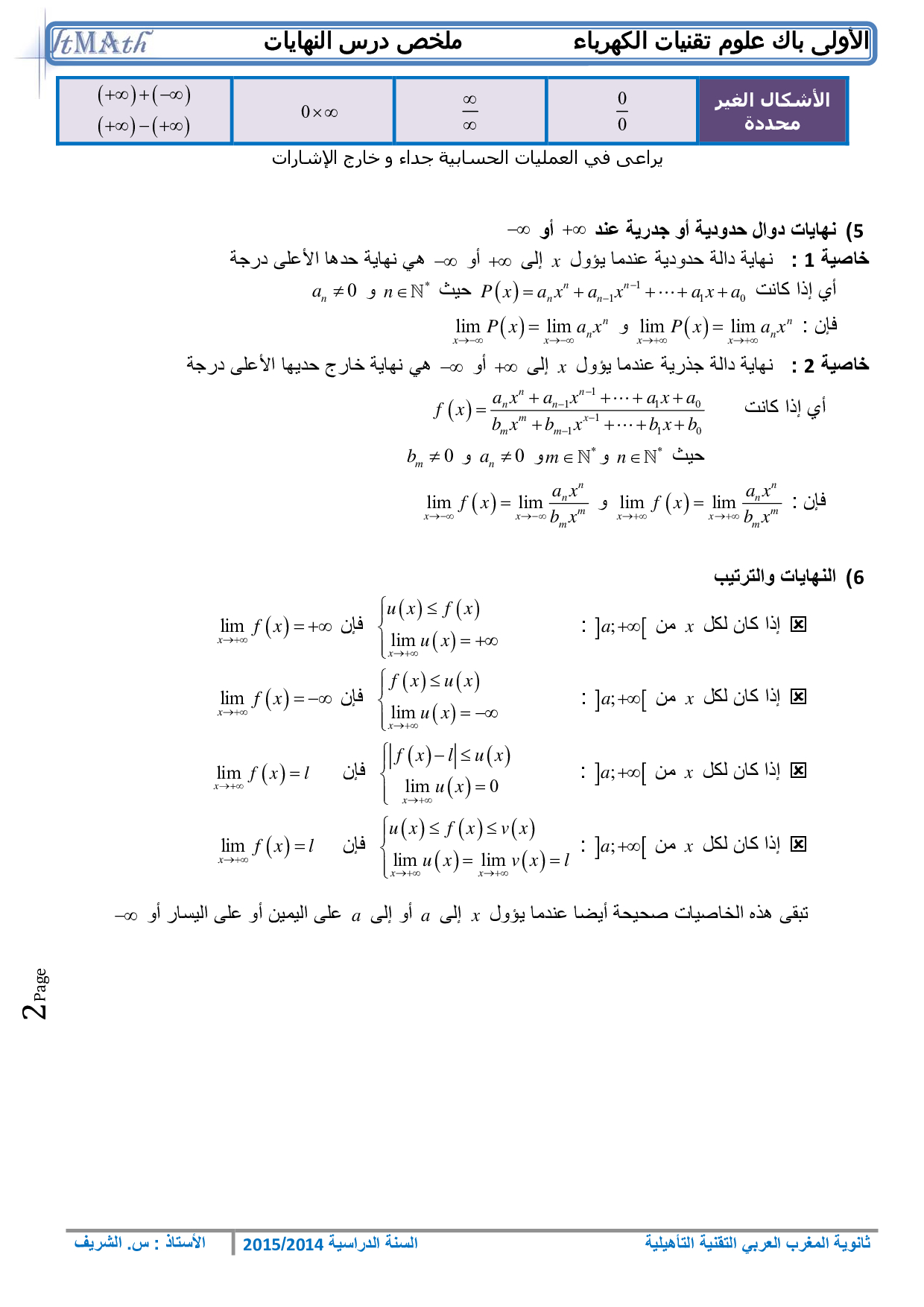 النهايات - ملخص الدرس 3