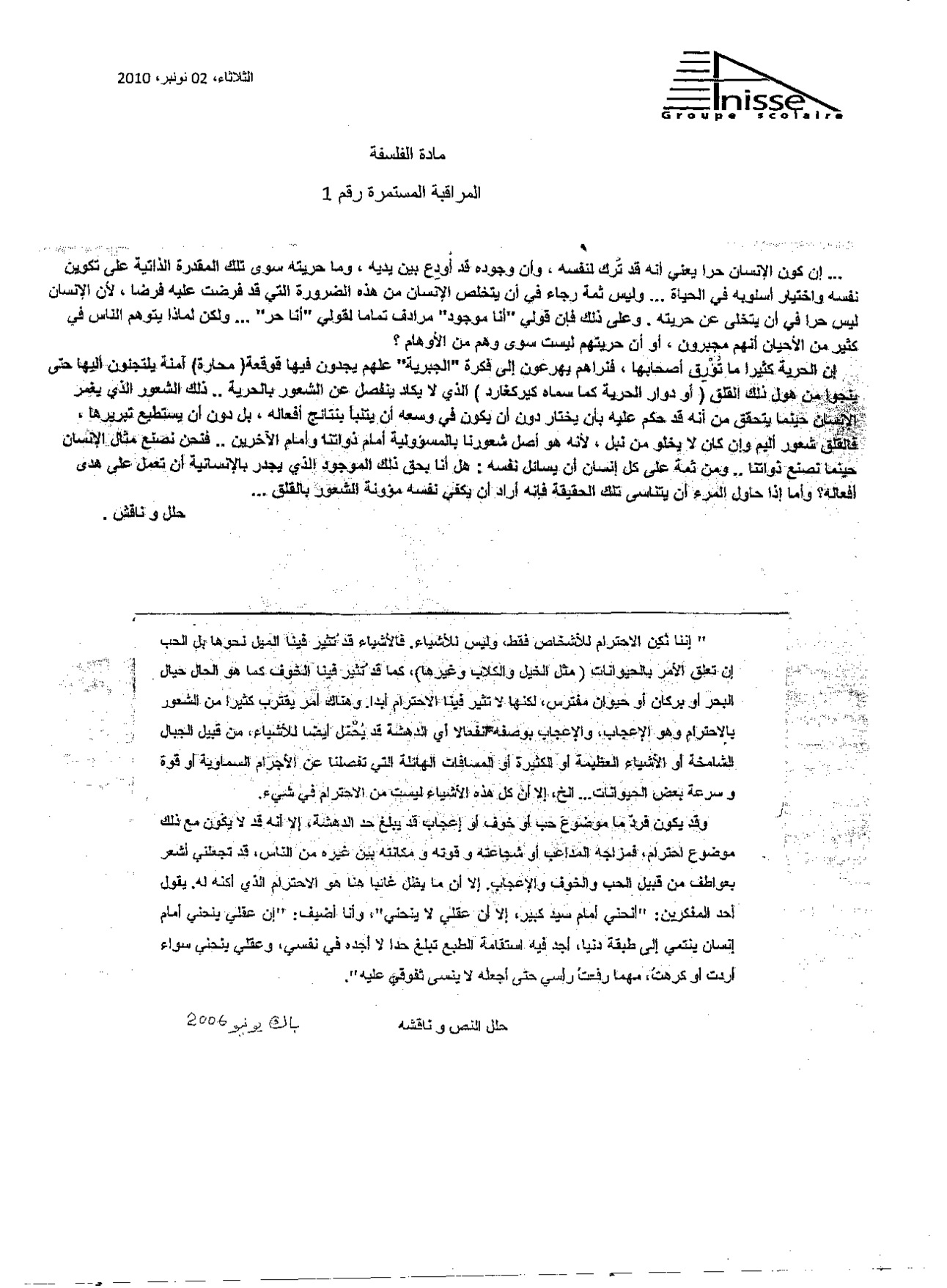 الفرض 1 نموذج 9 - الفلسفة ثانية باك علوم وتقنيات الدورة الأولى
