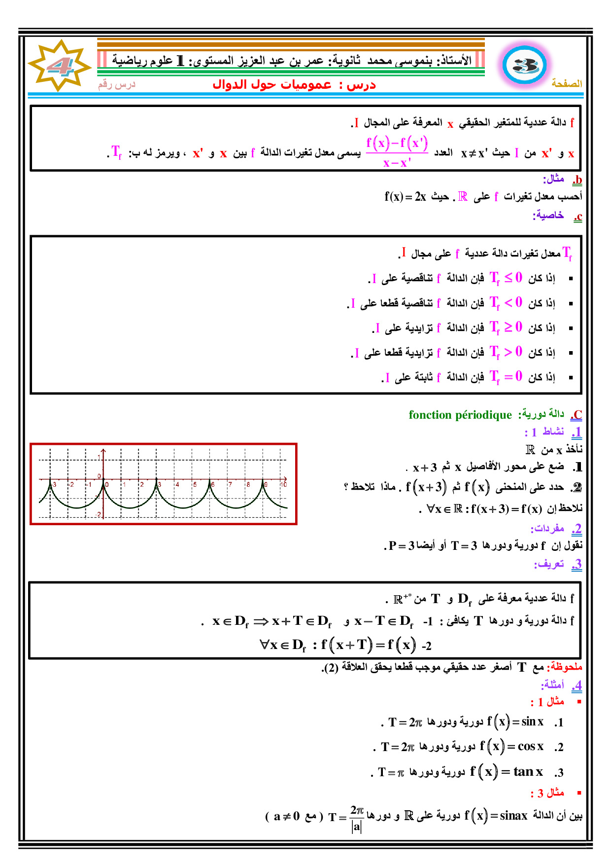 عموميات حول الدوال العددية - الدرس 1