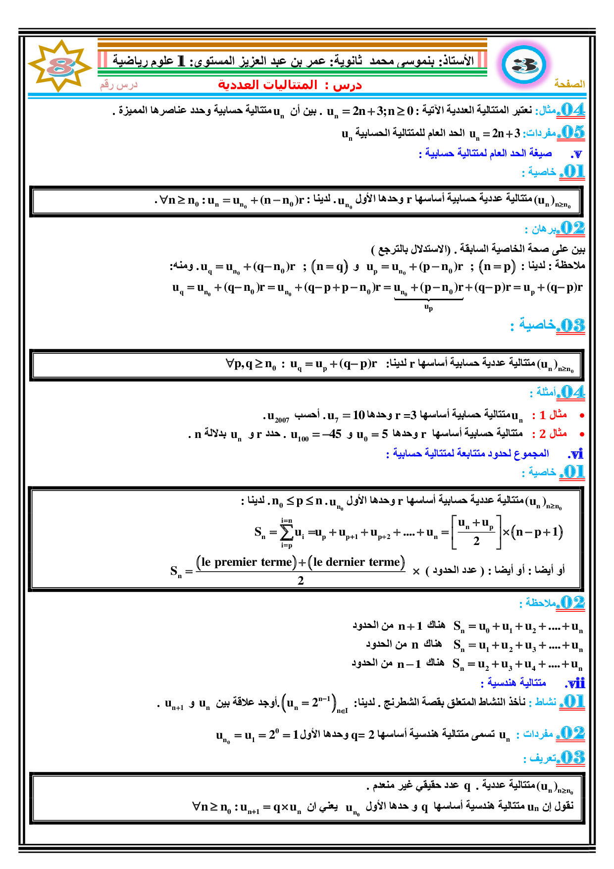 المتتاليات العددية - الدرس 1